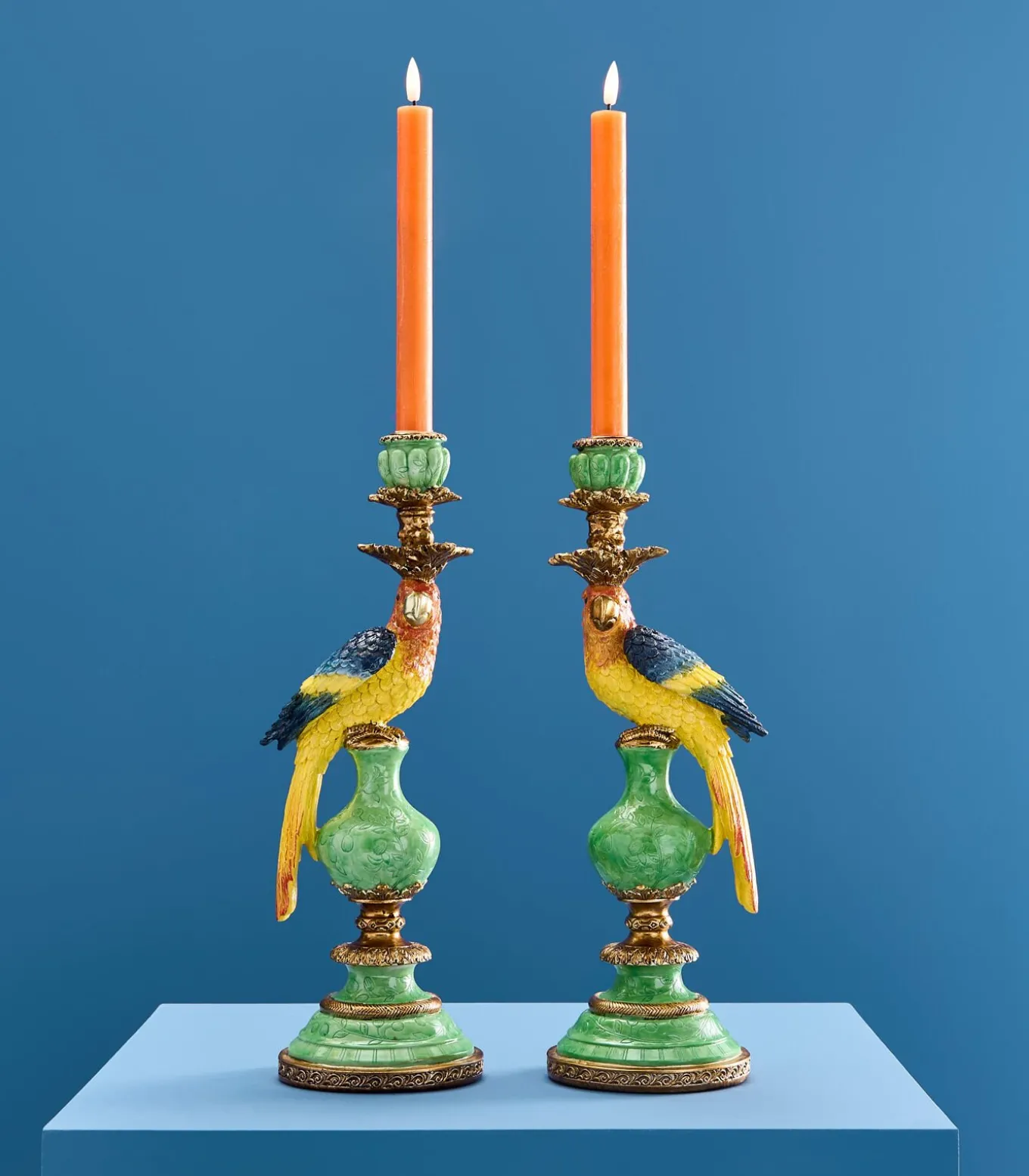 2-delig Set Kandelaar Papegaai/groen/blauw/geel