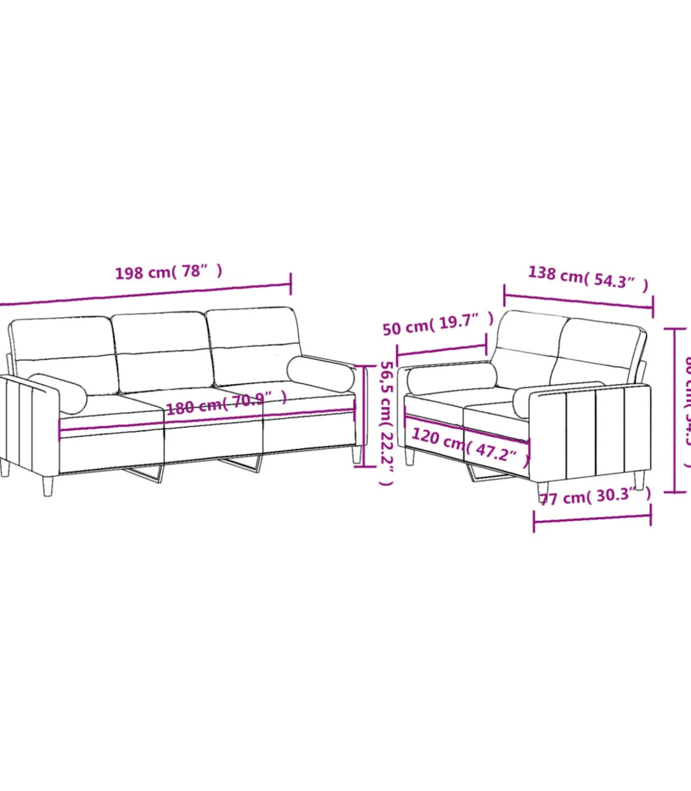 Afmetingen kussens (elk): 15 x 50 cm (ø x H)