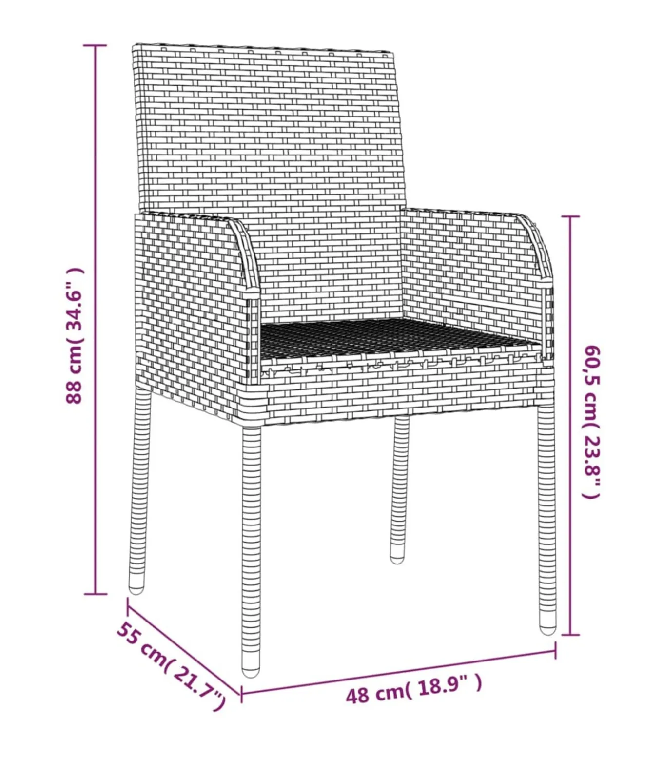 Stevig frame: de gepoedercoate stalen frames zorgen ervoor dat de tuinset stevig en stabiel is voor het gebruik buitenshuis.