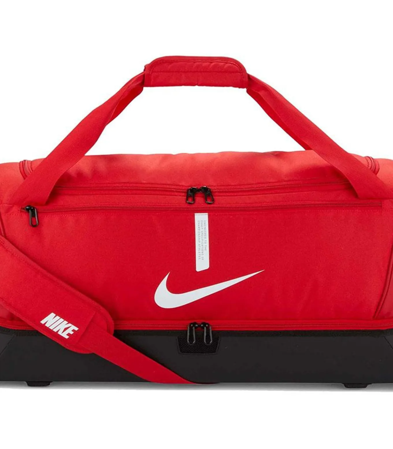 Product Description: Nike Academy TEAM – Plunjezak Rood – 100% Polyester Dit is een product van de merk Nike, het Academy Team–plunjezak in rood. Het is gemaakt van 100% polyester en heeft een interieurvolume van 59 liter. De zak bezit vijf zakken: één onderste zak, één voorzak, één binnenzak, één zijzak en riitsluiting. Het hoofdcompartiment telt één compartiment. De bag met verstelbare schouderriem, dubbele draagriem, klittenband, versterkte basis, rubberen basis en noppenvoeten heeft contrastende details en het logo van Nike. Het zakje is duurzaam gemaakt met stoftechnologie. De bevestiging van de zijriem bestaat uit een tweewegsysteem.