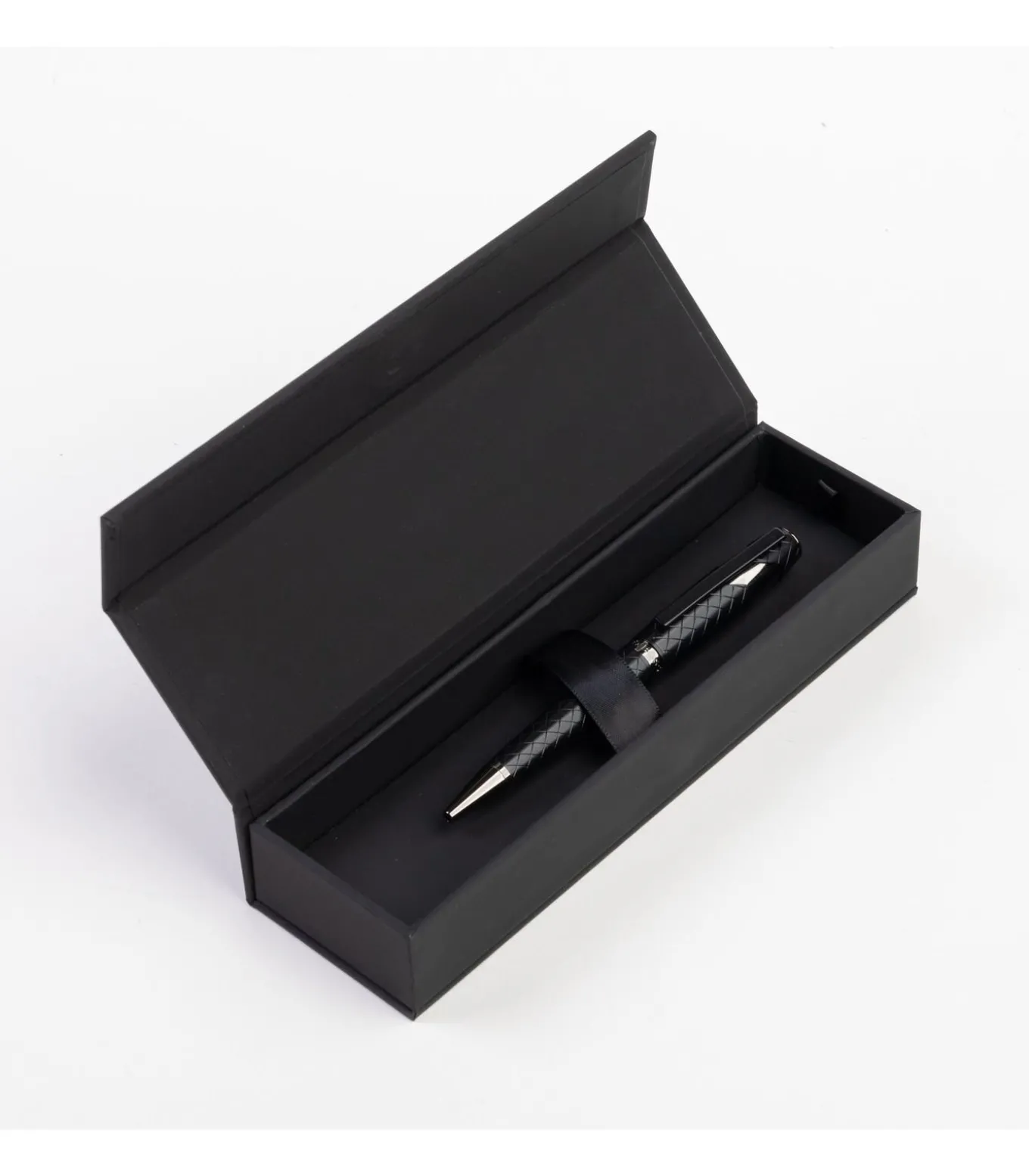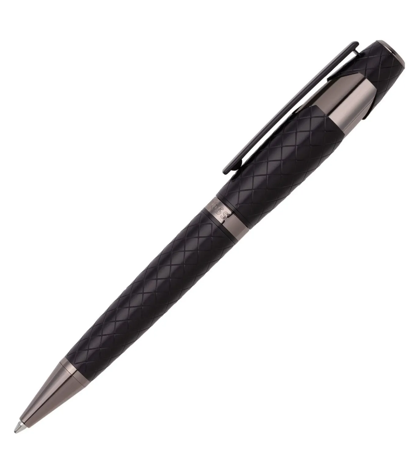 Voor een eigentijdse interpretatie van een tijdloos kledingstuk is de Chevron–lijn geïnspireerd op de klassieke visgraatprint, Een kenmerkend ontwerp van onze ready–to–wear stijlen. Met het innovatieve spel met textuur is een gedurfd modern schrijfinstrument gecreëerd. Deze versie, met zijn zwarte matte gevlochten textuur en gun trims is een waar statement van luxe. Dimensions: DIA.12/H.133 mm, Material: Brass,Metallic paint (matt),Gun plating