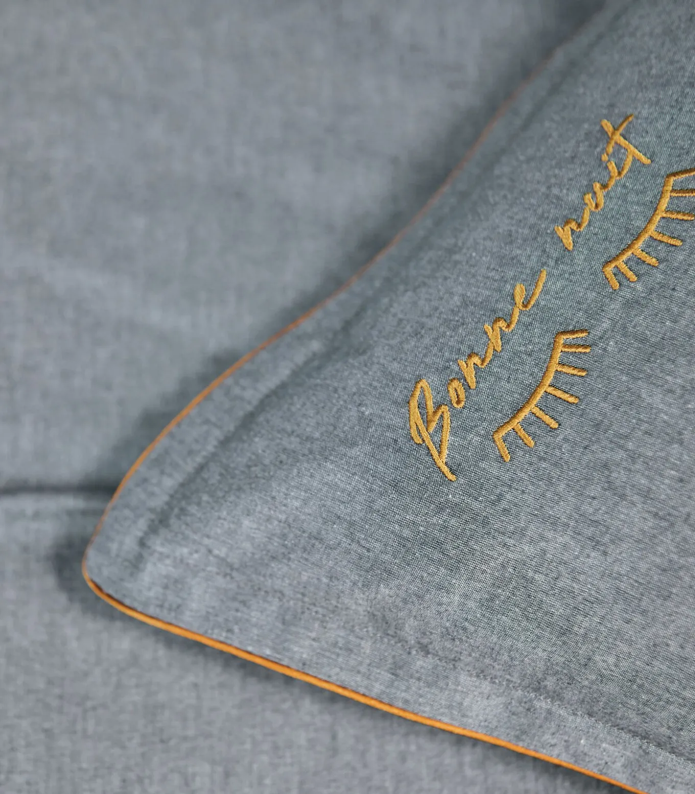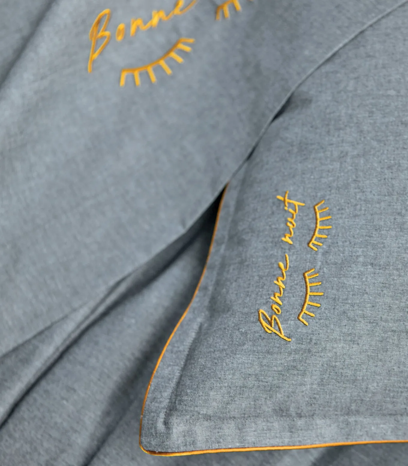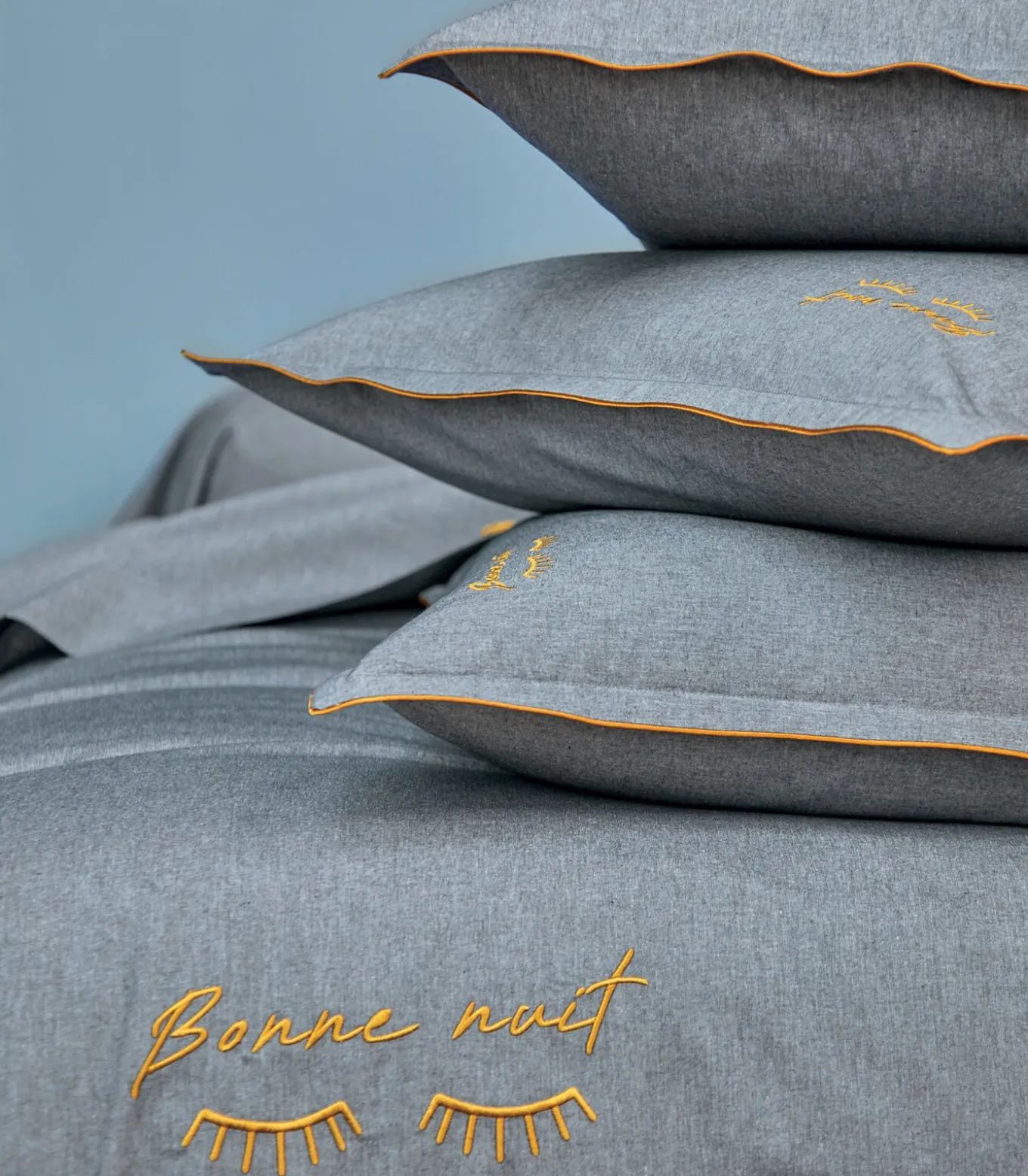 “Blanc des Vosges x 1083 willen Made in France onder de aandacht brengen en steeds meer ethische kwaliteitsproducten vervaardigen. Het is dan ook heel natuurlijk dat deze set is ontworpen in een stof gemaakt van katoen van gebruikte kleding. Een ‘Welterusten’–borduursel siert subtiel dit beddengoed.Deze items worden geweven, geverfd, geborduurd en gemaakt in de Vogezen.”