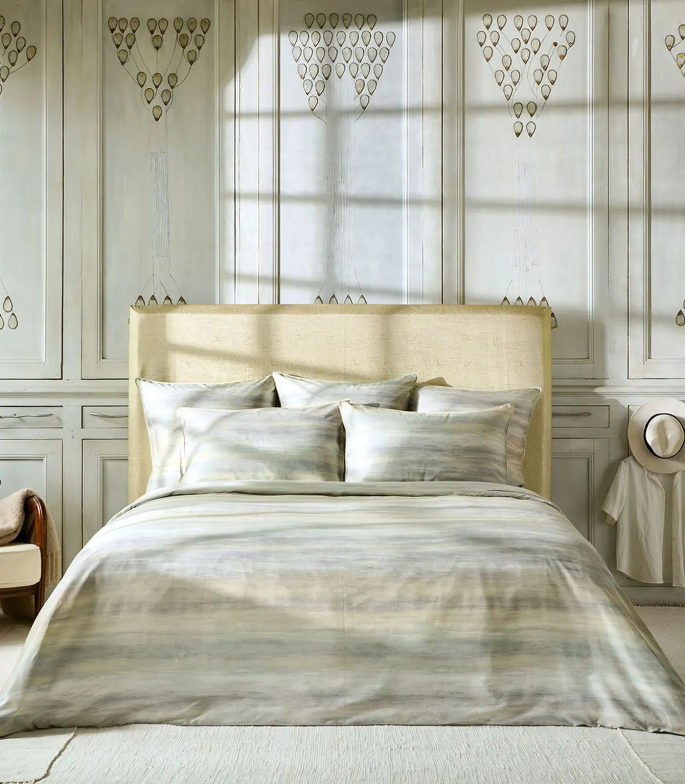 Aquarel vervaagde print in zand– en groentinten8 cm afwerkingAfwerking met ivoorkleurige bies