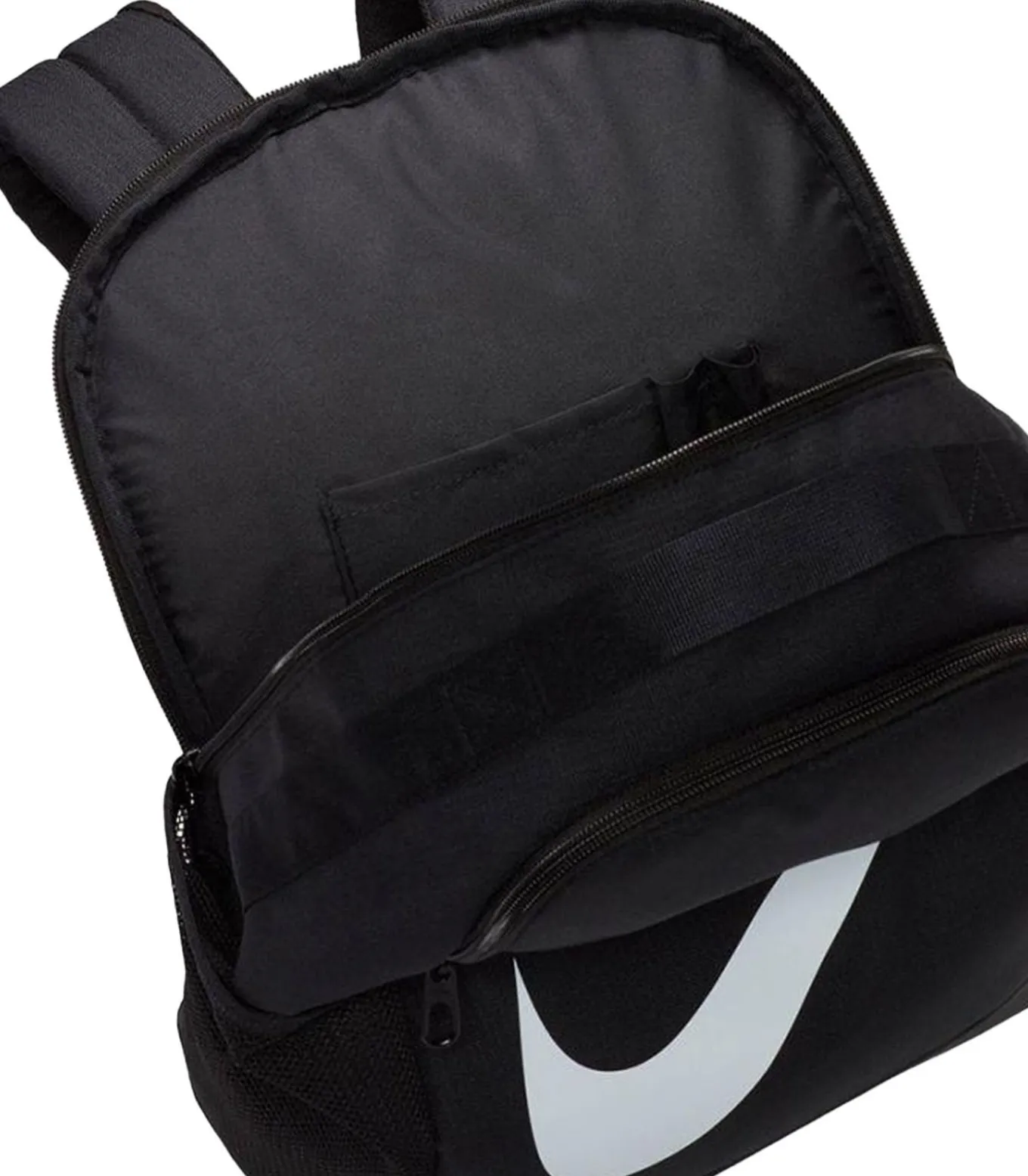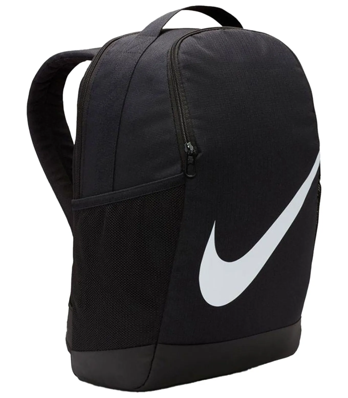 Nike–brands Brasilia rugzak zwart is gemaakt van 100% polyester en meet 30 cm breed en 25 cm hoog, met een capaciteit van 18 liter en een diepte van 15 cm. De zak bevat een voorzak, een rits, twee gaas zakken en een zijzak. Het hoofdcompartiment heeft één compartiment. De rugzak bezit een bevestigingsclip, gevoerde handvat, verstelbare schouderbanden en een ripsluiting. Het ontwerp is eenvoudig met het Nike–logo.