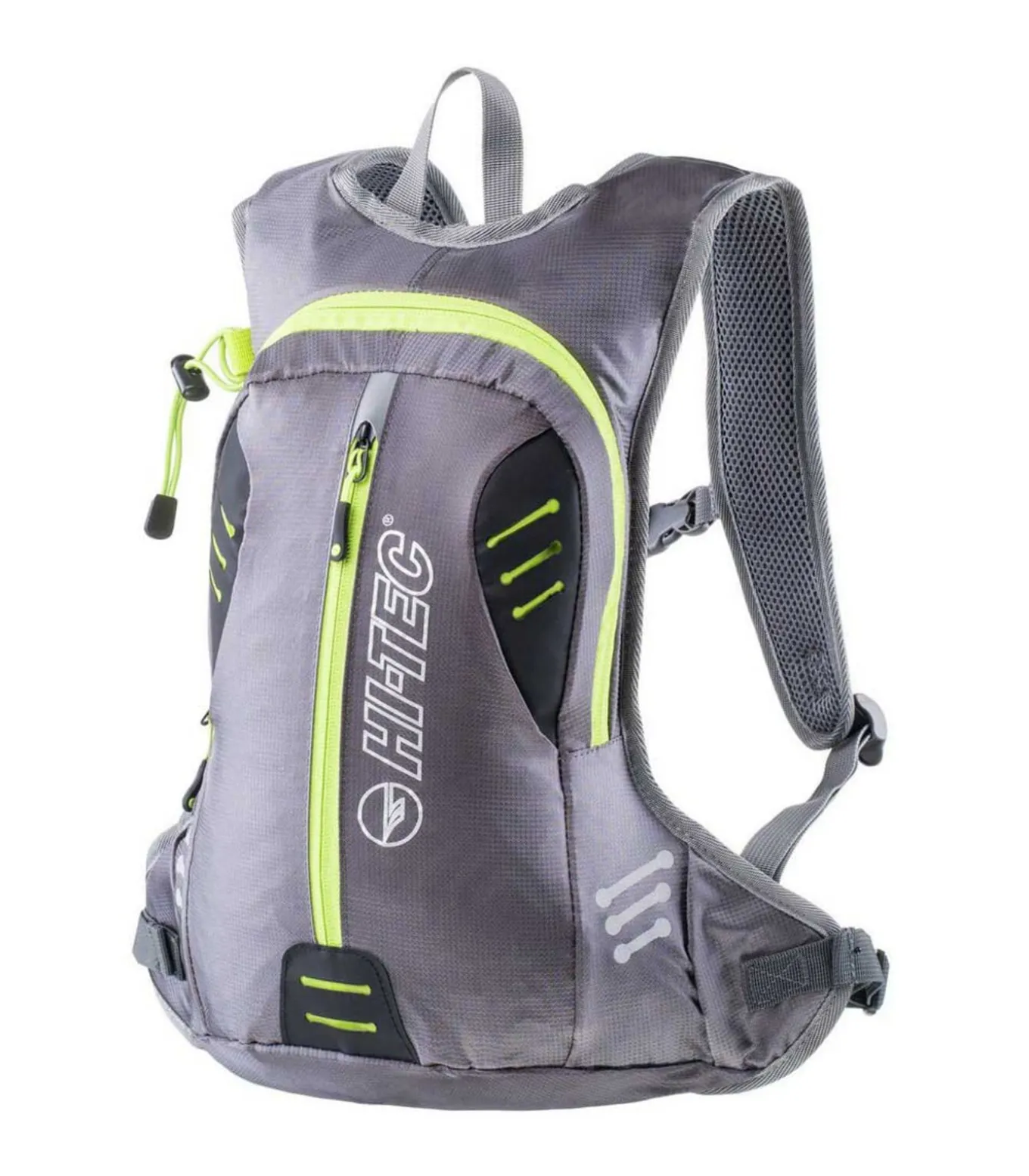 Productspecificaties: Hi–Tec Ivo Logo Rugzak Materiaalsamenstelling: 100% polyester ripstop stof. Afmetingen: 43 cm hoogte, 31 cm breedte, 11 cm lengte. Ontwerpkenmerken: Ontwerp met logoprint en reflecterende accenten. Stof maakt gebruik van scheurbestendige technologie. Sluiting: Contrasterende ritssluiting. Verstelbare onderdelen: Schouderriem, rugpaneel, draagsysteem en compatibiliteit met hydratatieblaas. Compartimenten: Eén hoofdvak. Zakken: Eén voorvak, één zijvak met ritssluiting. Capaciteit: 6 liter opbergruimte.