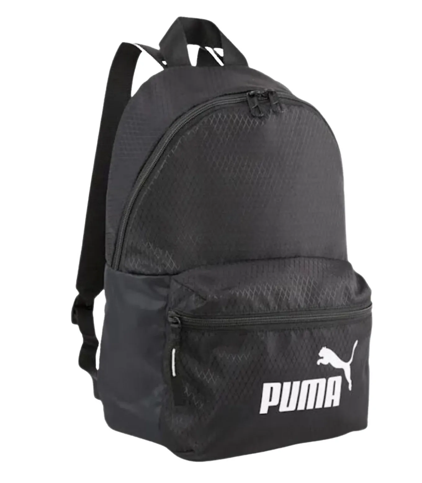 Puma CORE BASE – Zwarte ruzak met 100% poliesterd. De rucksack heeft een gereedschapspositie van 35 cm hoog en 25 cm breed, met een diepte van 12 cm en een inhoud van 12 liter. Het heeft één voorzak met rijtsluiting en twee compartimenten: één binnencompartiment en één hoofdcompartiment. De schouderriem is stevig verstelbaar, versterkt met een Puma merkrij en Merkrit trekker. De rug en basispanelen zijn geweven en waterafstotend. Het draaghandvat van dit rucksack is gemaakt van geweven band. Het is geschikt voor decoratieve doeleinden, en het ontwerp toont het Puma logo en structuur. De bevestiging is met een tweewegrits.