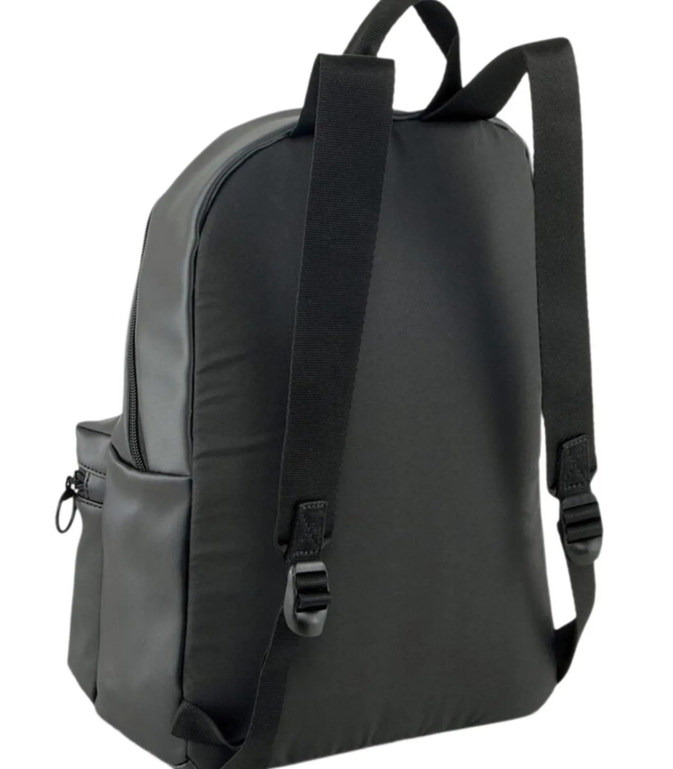 Puma’s CORE UP zwarte rugzak is gemaakt van 100% polyester met een PU–verzorgde buitenlaag. Deze zware rugzak (150D Denier) heeft een lengte van 35cm, een breedte van 24cm en een diepte van 11,5cm, waardoor het een inhoud van 9,7 liter heeft. Het bevat één voorzak met ritssluiting en is uitgerust met één binnencompartiment en één hoofdcompartiment. De rugzak heeft een verstelbare schouderriem en een draaggreep van geweven band. Het ontwerp van deze zwarte rugzak is eenvoudig en bevat het Puma logo. De twee–kant ritssluiting zorgt ervoor dat de rugzak stevig wordt vastgemaakt.