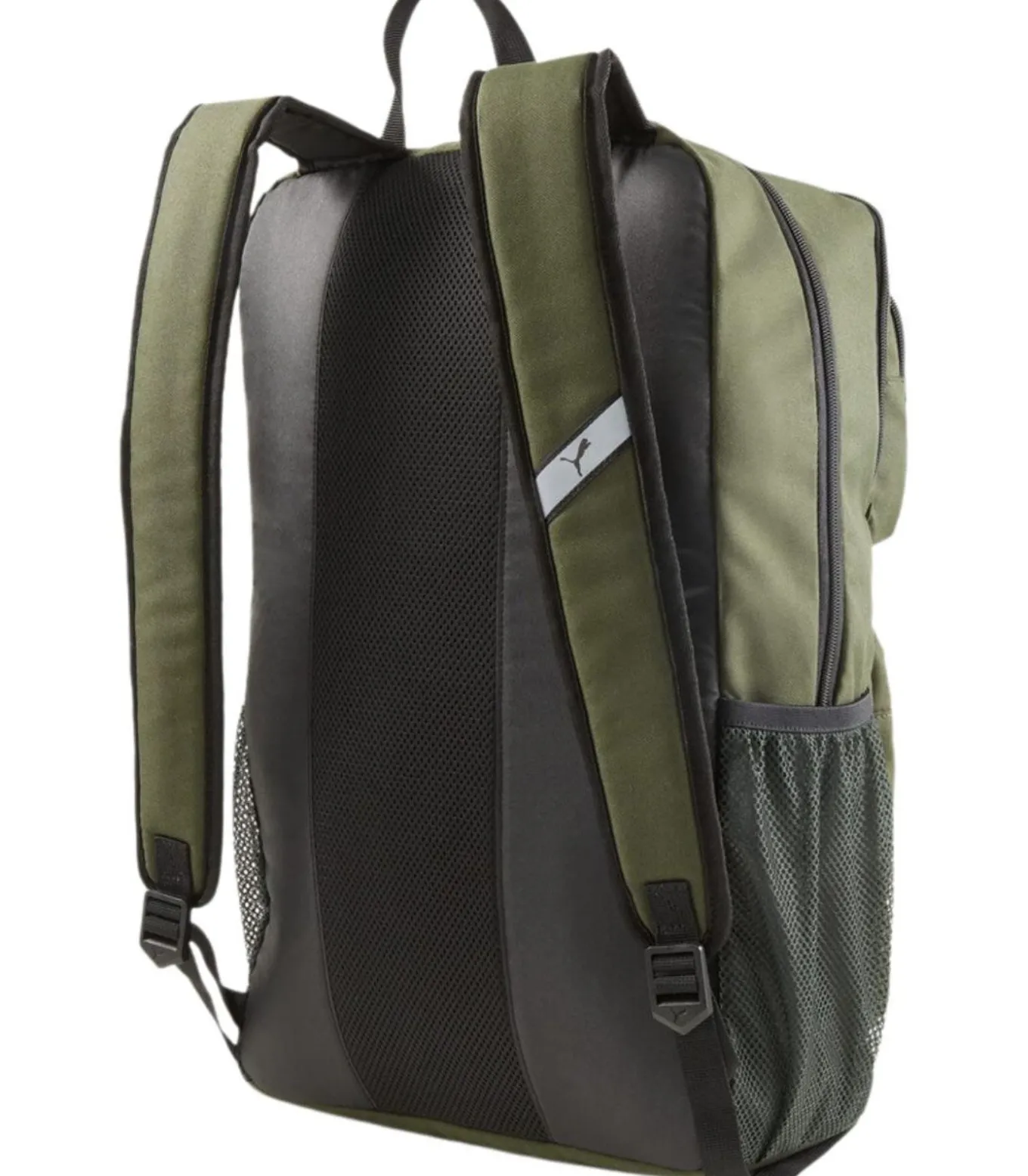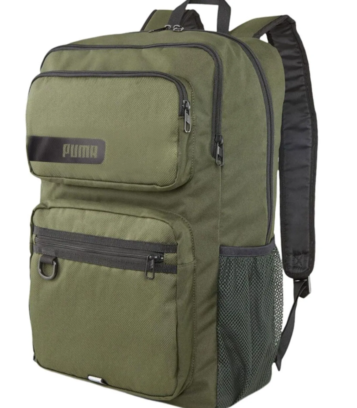 Puma–merkproduct DECK II – Groene rugzak biedt een volle 21 liter inhoud met drie voorzakken en een ritssluiting. Deze polyesterrugzak meet 47 cm hoog, 29,5 cm lang en 14 cm breed. Het hoofdcompartiment van de rugzak beschikt over een laptopcompartiment, fleshouder, D–ring en gaaspaneel. Verder bevat deze rugzak een gewatteerd rugpaneel, reflecterend detail, schouderriem en handgreep. Het ontwerp van deze rugzak is voorzien van het logo van Puma. De rugzak wordt via twee rijen bevestigd.