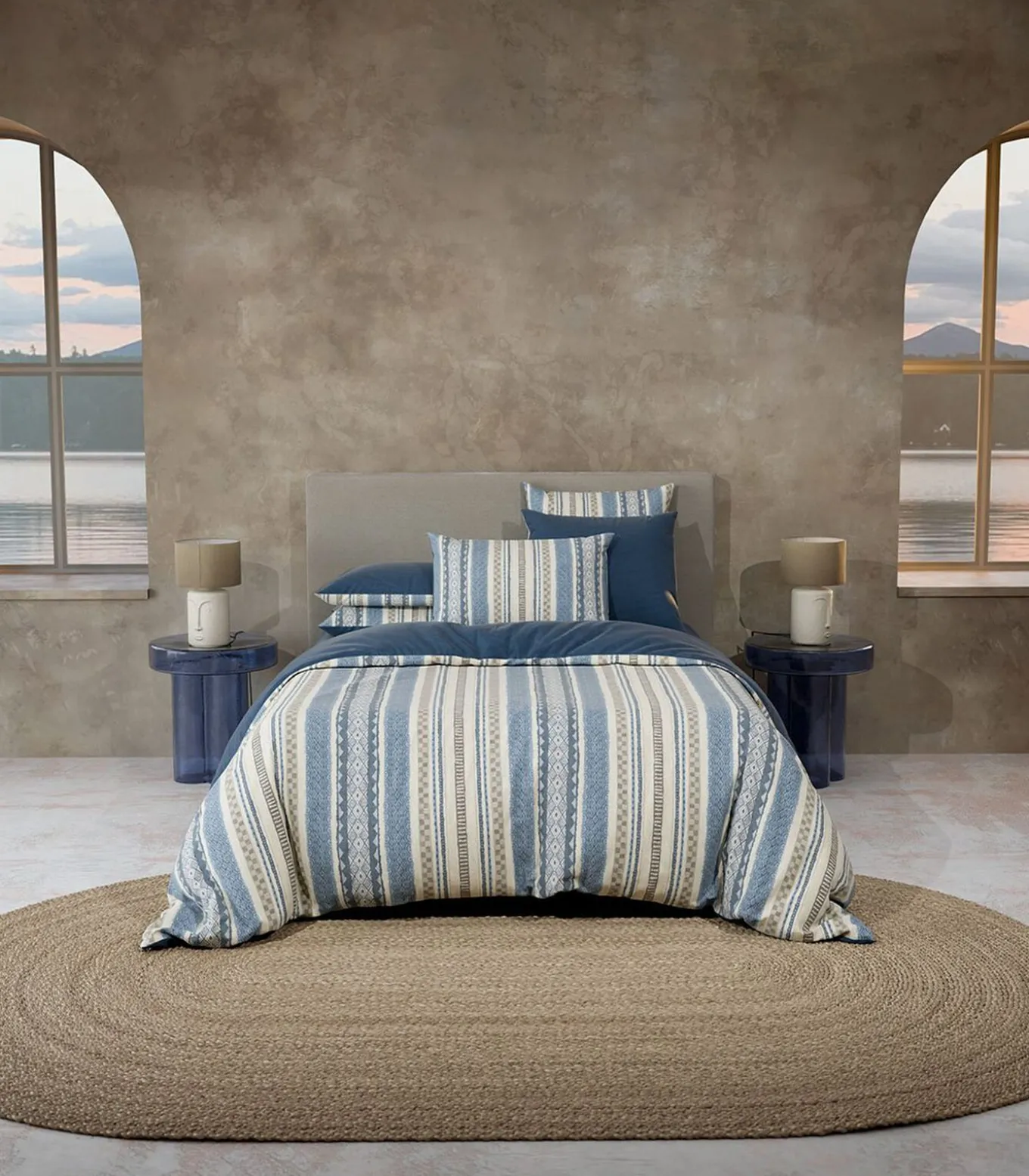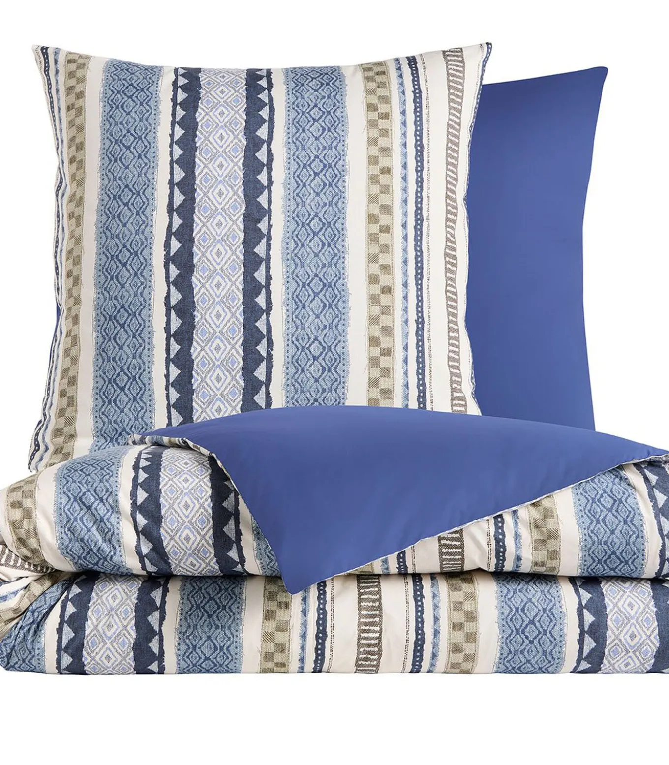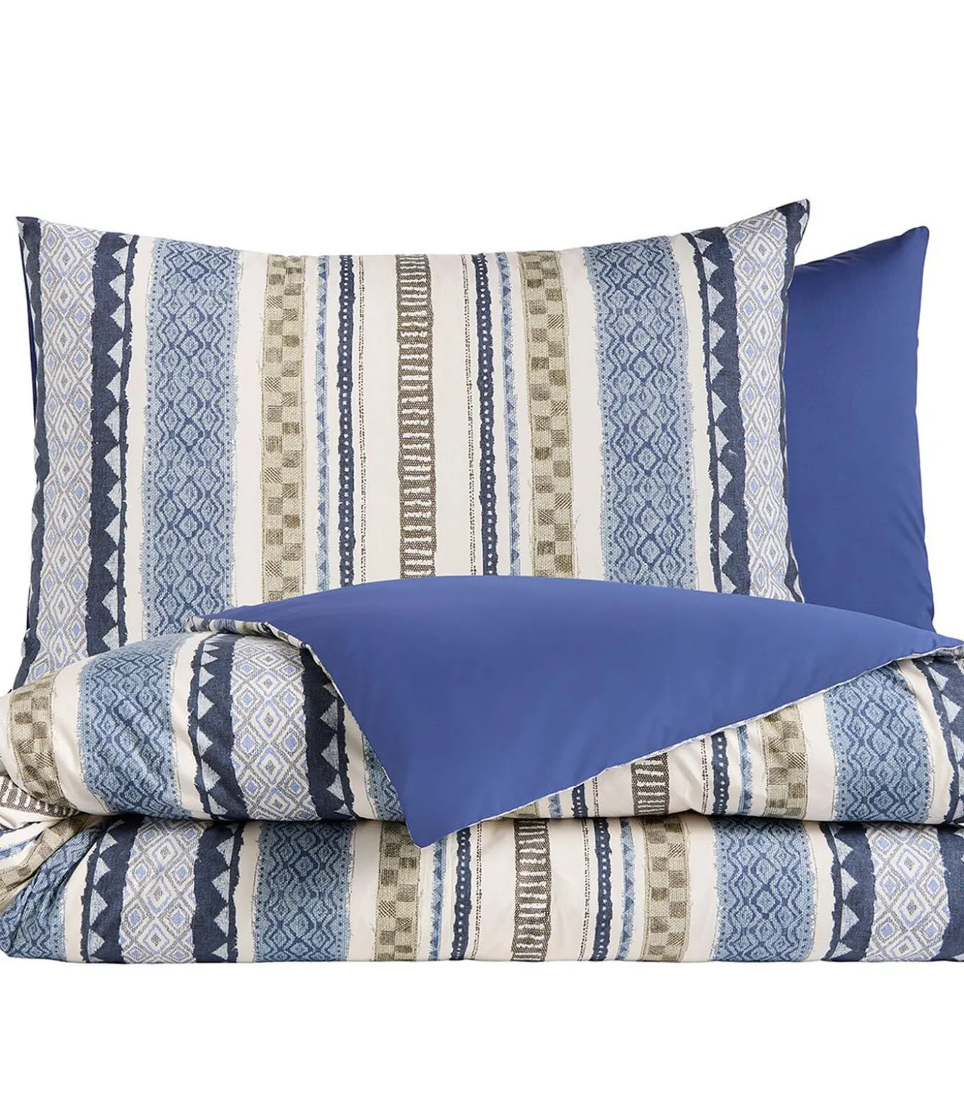 Dekbedovertrekset en kussensloop(s)Meerkleurige verticale streepprintAchterkant Vexin EncreAfwerking in flessenvorm – Reversibele kussenhoes