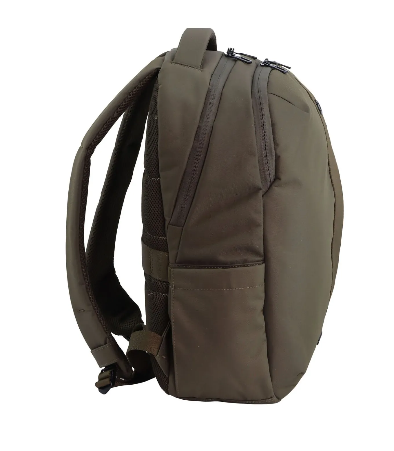 ‘– Materiaal: RPET Polyester– 30B x 13D x 44.5H CM– 0.825 KG.– 14 LITER– Eén handvat– Eén voorvak met ritssluiting– Twee hoofdritscompartimenten– Eén voorste ritssluitingscompartiment– Verstelbare schouderbanden– Multi–functioneel open en ritssluiting vak– Sleutelhouder– RFID–vak– Gewatteerd compartiment voor 15″ computer / laptop– Gewatteerd vak voor tabletbescherming– Twee zijvakken– Band aan de achterkant om aan een bagagedr