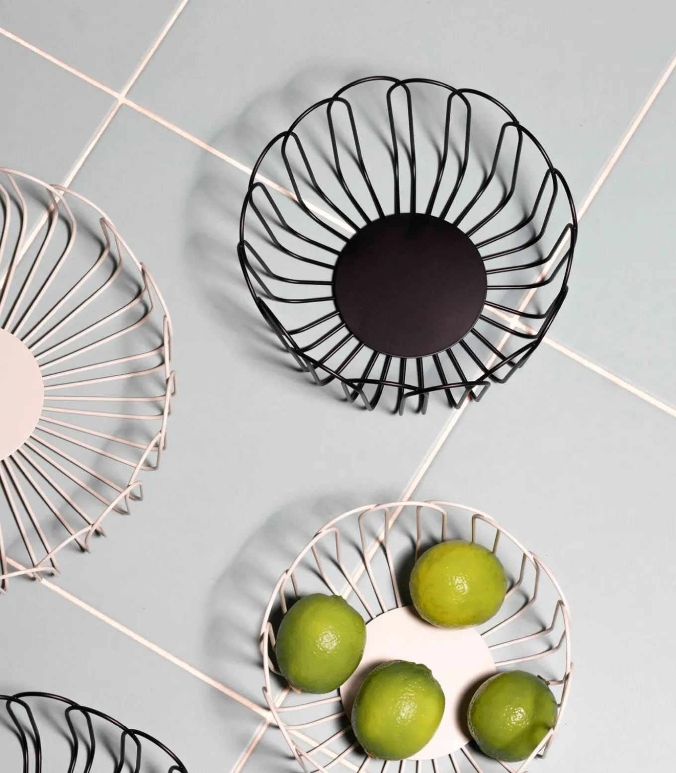 Onze trendy Flores–mandjes zijn de perfecte oplossing om op een stijlvolle manier fruit te bewaren op je keukenaanrecht of eettafel, zo blijven gezonde snacks binnen handbereik! Deze mandjes, verkrijgbaar in zwart of beige, zijn ook ideaal voor het serveren van brood of pistolets tijdens het ontbijt of diner.