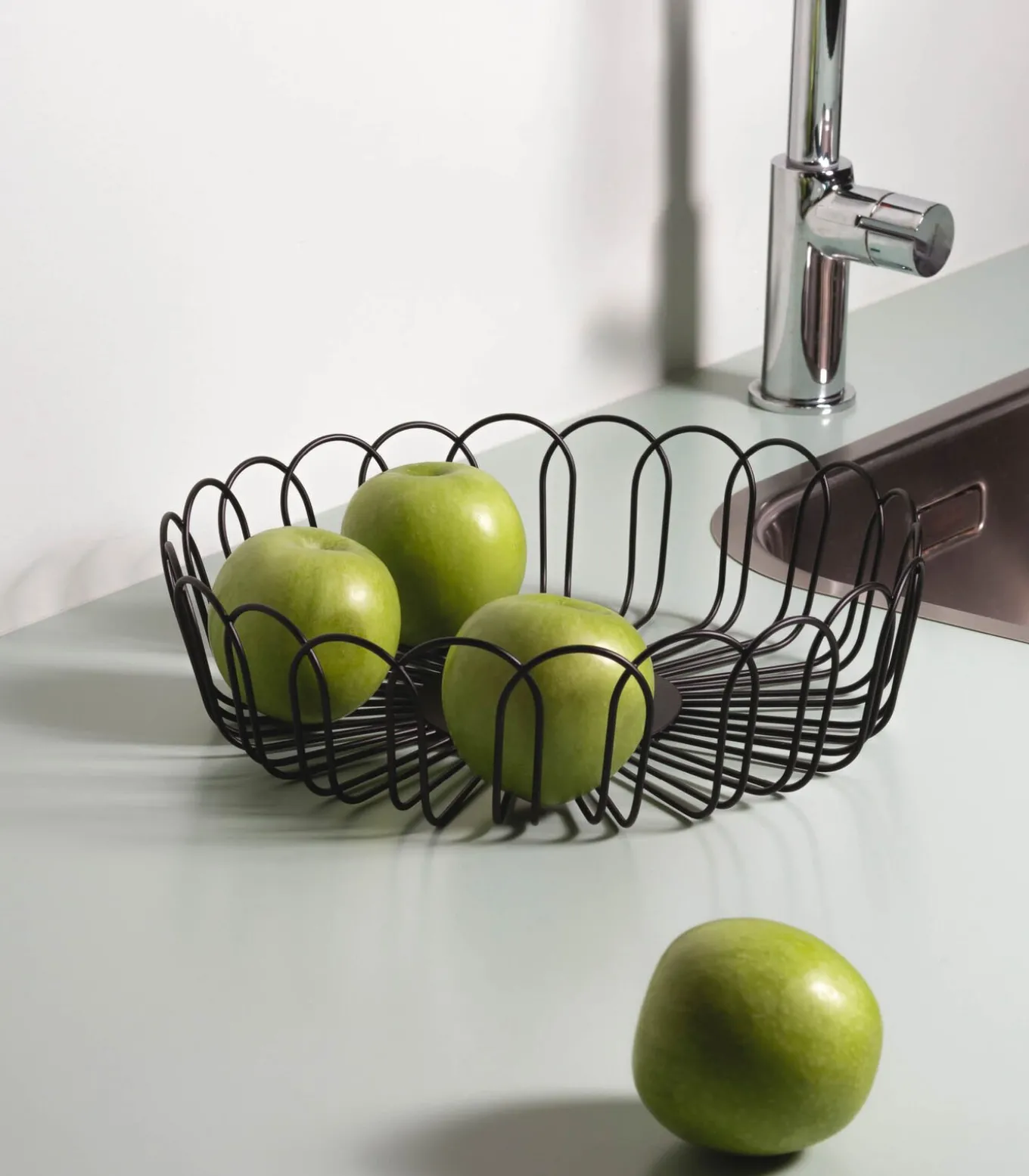 Onze trendy Flores–mandjes zijn de perfecte oplossing om op een stijlvolle manier fruit te bewaren op je keukenaanrecht of eettafel, zo blijven gezonde snacks binnen handbereik! Deze mandjes, verkrijgbaar in zwart of beige, zijn ook ideaal voor het serveren van brood of pistolets tijdens het ontbijt of diner.