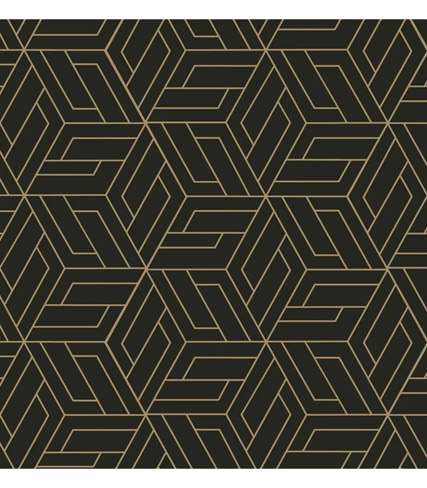Prachtig ontwerp: het behang heeft een elegant geometrisch patroon in een gedurfd zwart en gouden palet. Het ingewikkelde ontwerp is perfect voor het creëren van een opvallende muur en brengt een vleugje luxe en verfijning in elke kamer.
