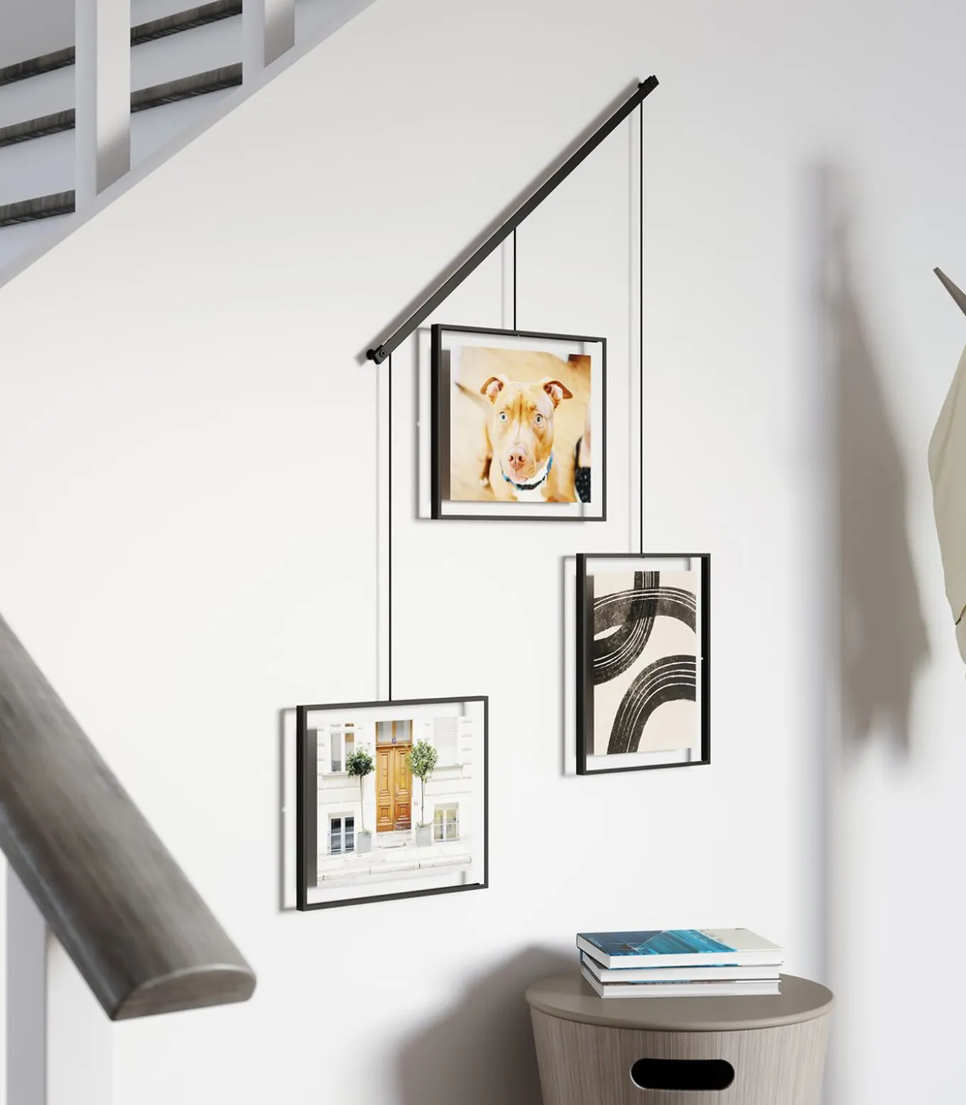 Maak je eigen fotowand met de Exhibit fotolijsten van 20 x 25 cm. Deze set is een aanvulling op de originele fotocollagelijst Exhibit en bestaat uit drie grotere lijsten, elk hangend aan een eigen metalen stang. Met Exhibit krijgen je favoriete staande en liggende foto’s een bijzonder plaatsje aan de muur. Elke lijst van 20 x 25 cm is geschikt voor een foto van 13 x 18 cm. Gebruik Exhibit om moderne accenten aan te brengen in je woonkamer, slaapkamer, hal, kantoor of studio. Geef je favoriete foto’s en kunstwerken het plekje dat ze verdienen.
