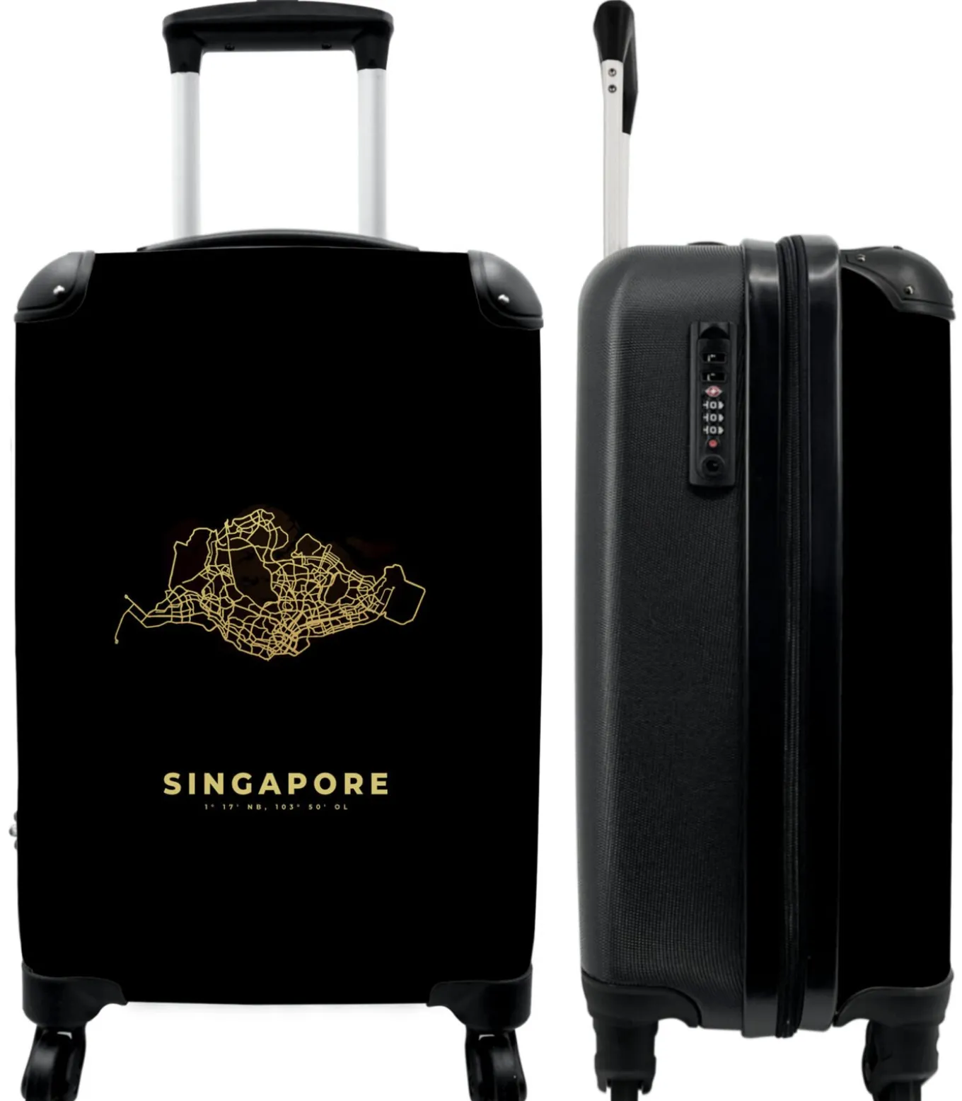 Handbagage Koffer met 4 wielen en TSA slot (Kaarten – Stadskaart – Goud – Singapore)