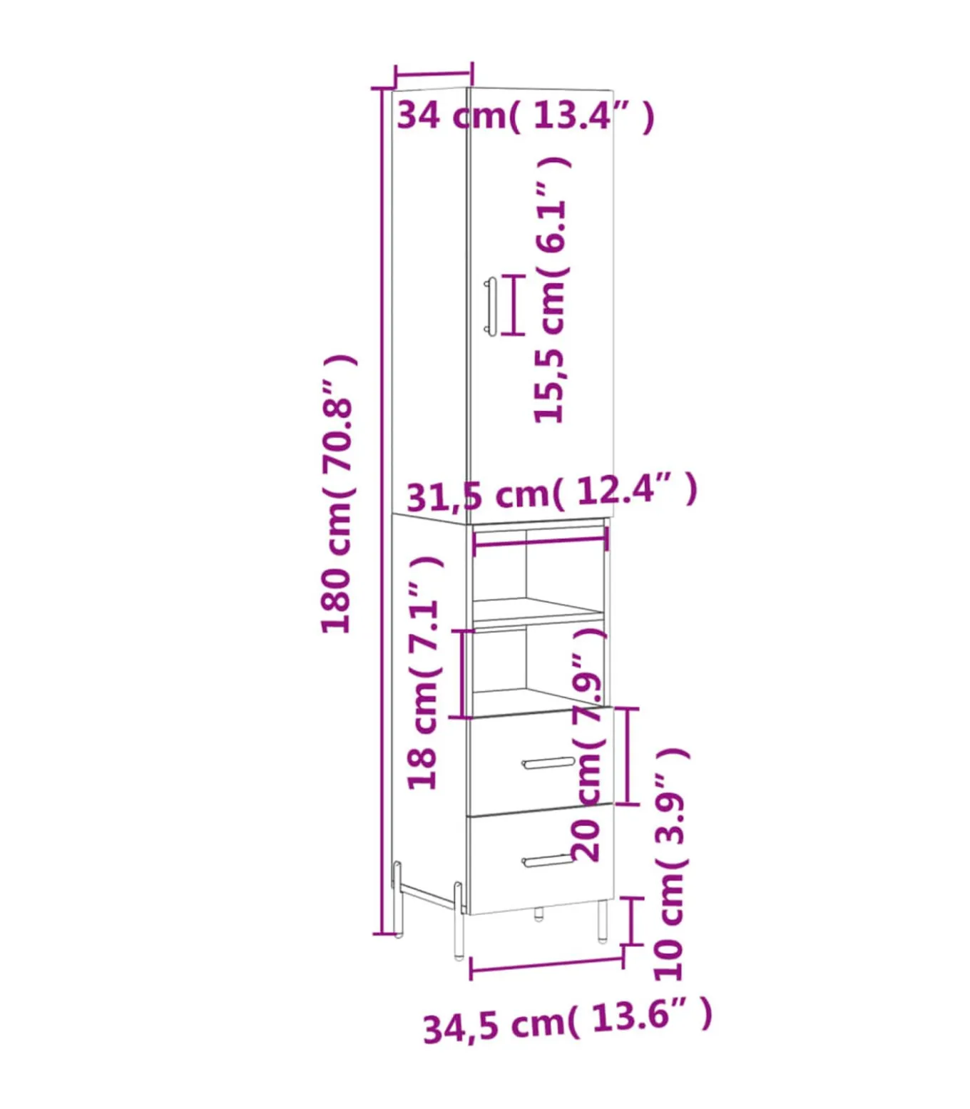 Afmetingen dressoir: 34,5 x 34 x 90 cm (B x D x H)