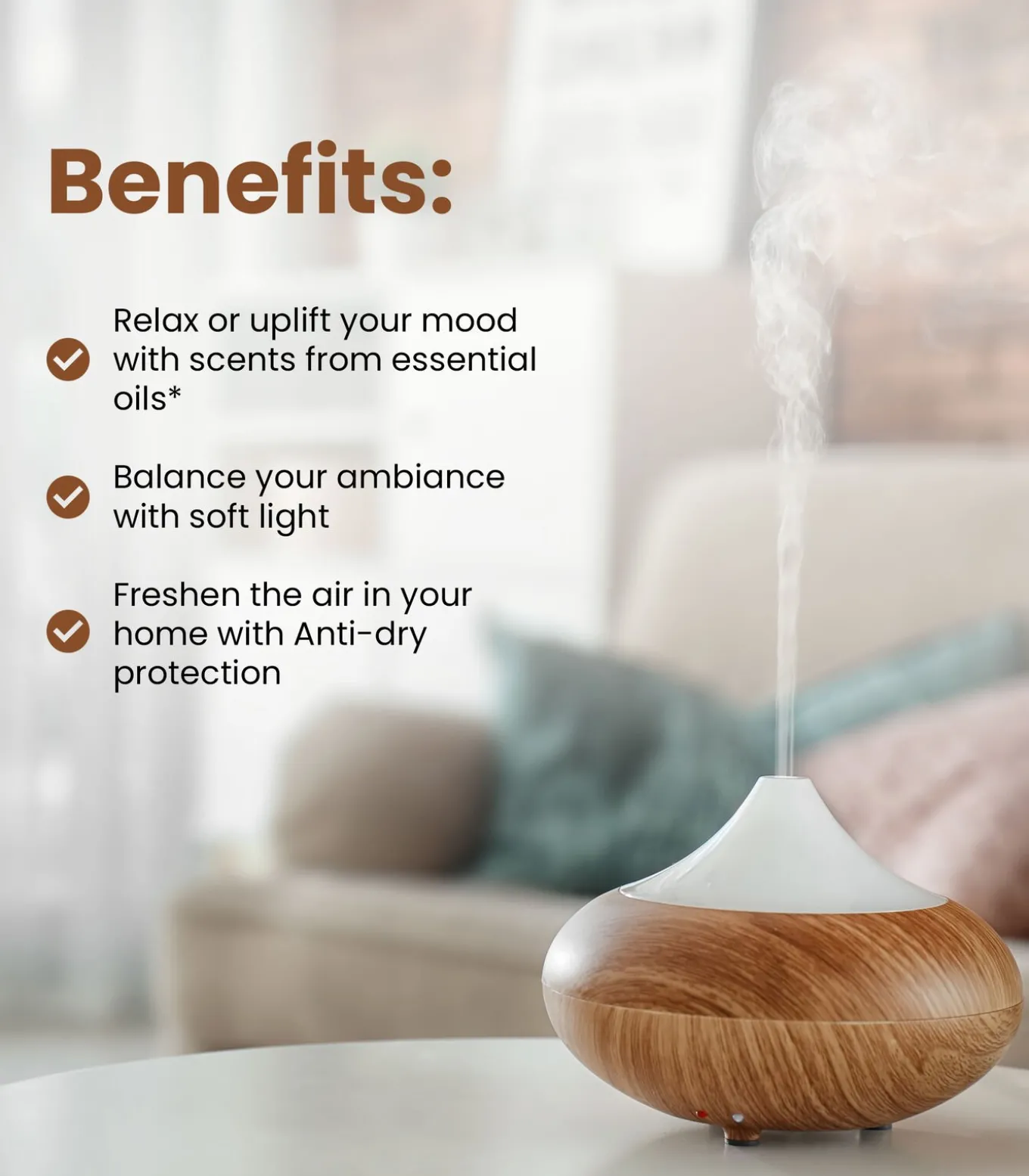 Dr Botanicals Natuurlijke en Kalmerende Houten Aromadiffuser is een therapieapparaat met nieuwe technologie dat aromatherapie, lichttherapie en een luchtzuiveraar combineert. Het beschikt over 7 veranderende lichtkleuren om verschillende sferen in de kamer te creëren, 2 nevelstanden die de geurintensiteit regelen van sterk tot licht wanneer gebruikt met essentiële oliën*, en zorgt voor frisse bevochtiging van droge binnenlucht.Kenmerken:ü Gaat 1–3 uur mee met één vullingü 7 kleursferen LED–licht en 2 nevelstandenü Fluisterstilü In de doos: 1 aromadiffuser, 1 adapter en 1 handleidingVoordelen:ü Ontspan of verbeter je stemming met geuren van essentiële oliën*ü Breng balans in je sfeer met zacht lichtü Vernieuw de lucht in huis met anti–droogtebescherming
