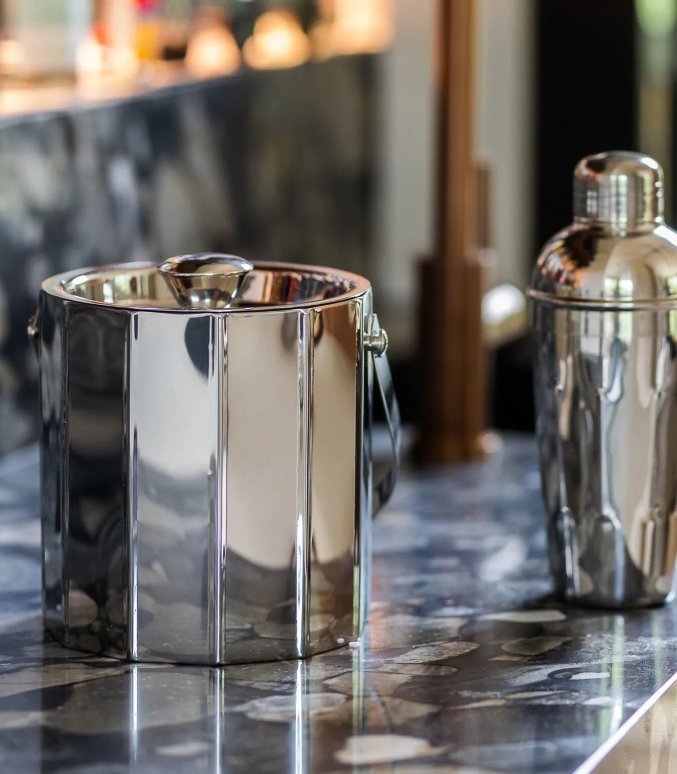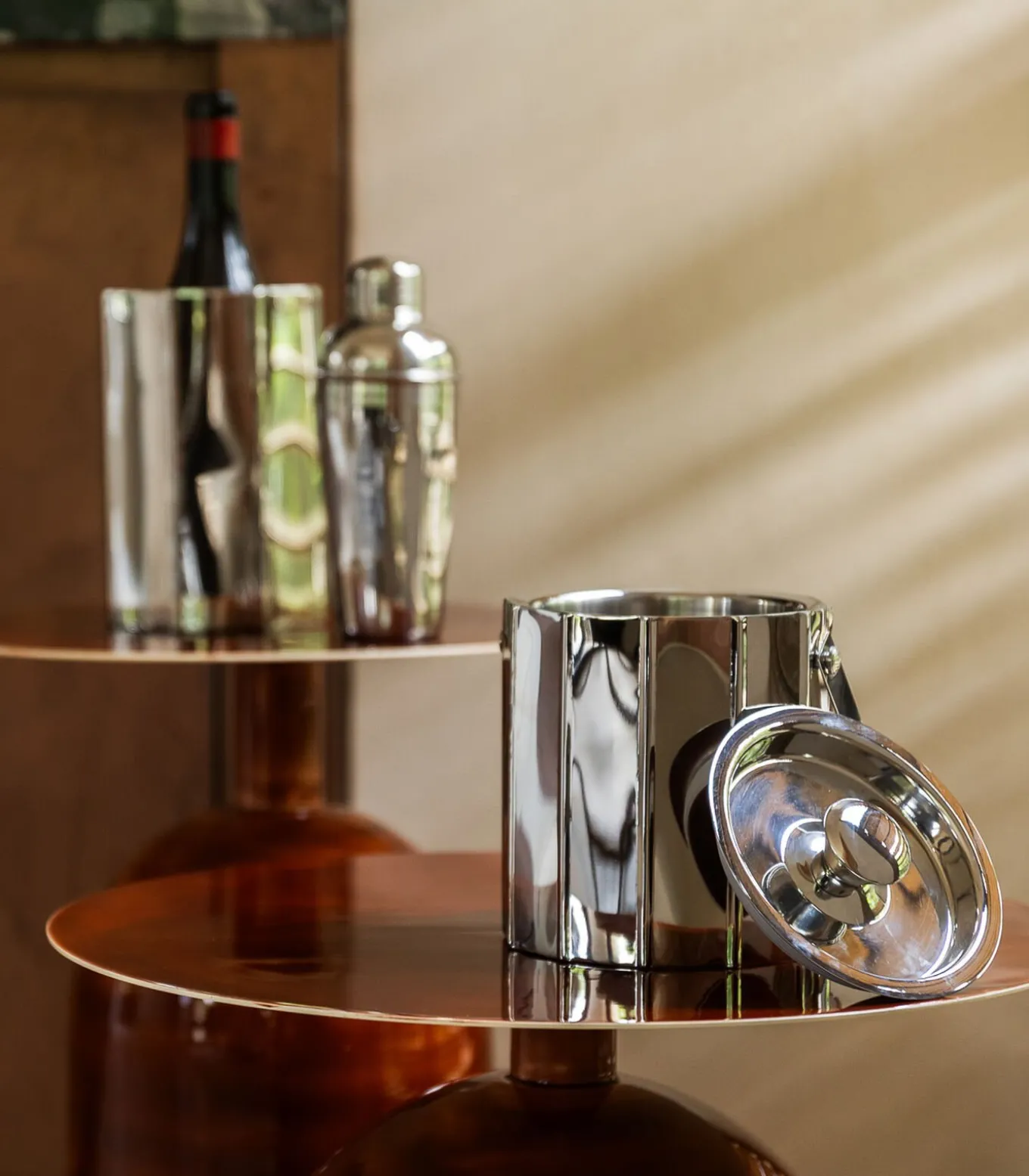 Elk bar–item binnen de Nox collectie is zorgvuldig ontworpen, waarbij zowel detail als functionaliteit centraal staan. De koele glans van het chroom vormt een stijlvol contrast met de warme tonen van cocktails en dranken, wat zorgt voor een verfijnd visueel spel. Het resultaat? Een collectie die uitnodigt én imponeert.