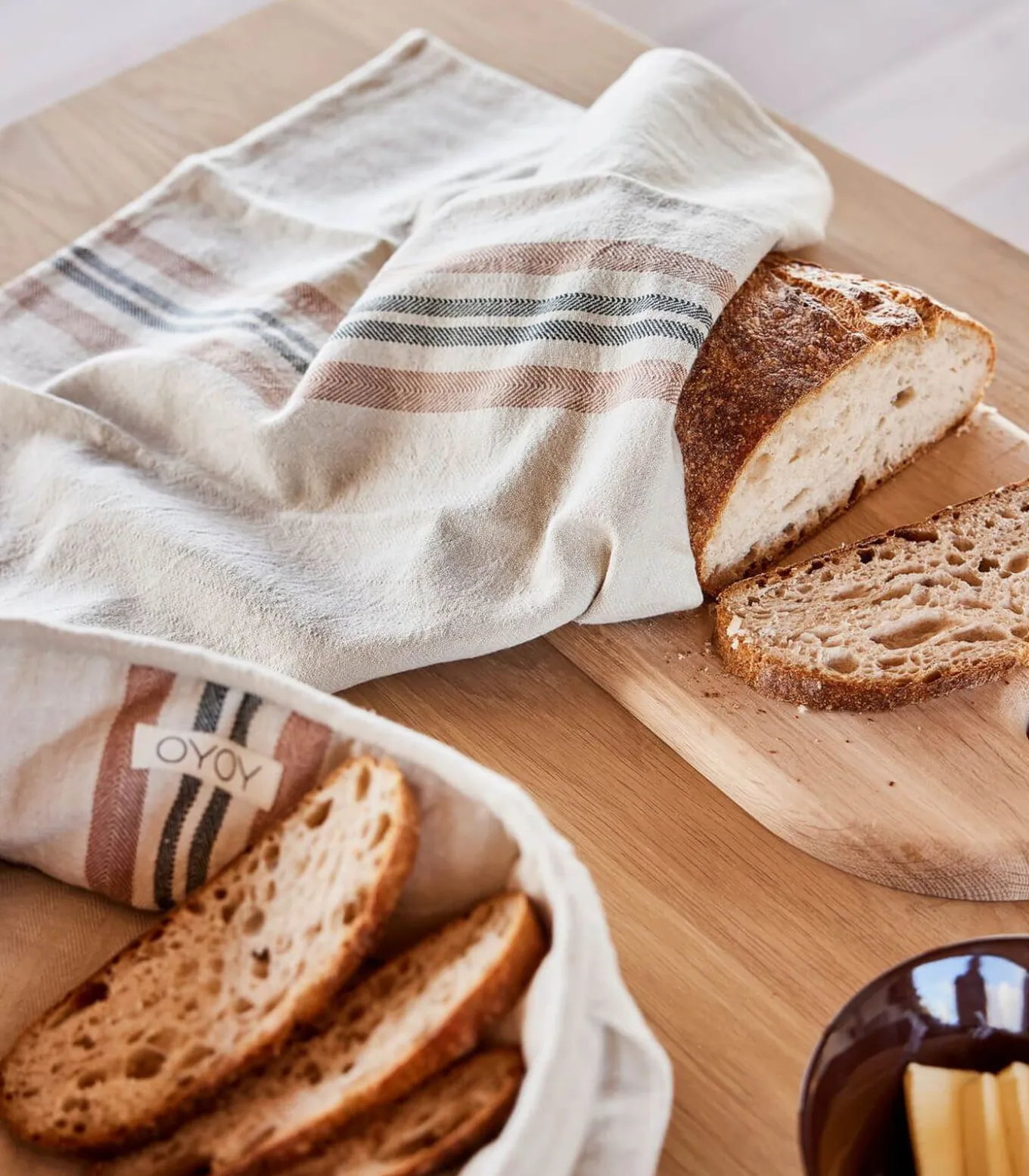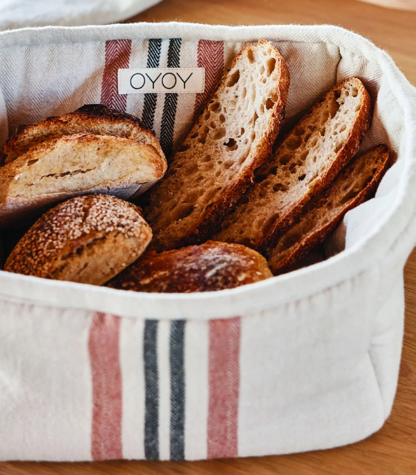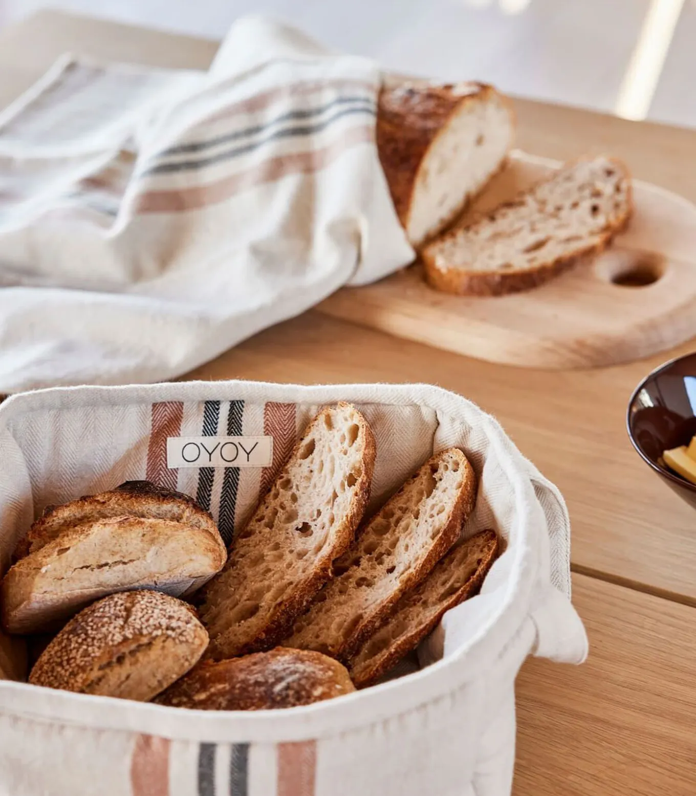 De Linu Broodmand is een stijlvolle toevoeging aan de Linu serie. Hij is gemaakt van biologisch katoen met een Oeko–Tex polyester vulling en heeft een visgraatmotief en een eenvoudig ontwerp met een variatie van verschillende strepen, wat een vleugje charme toevoegt aan je tafel.