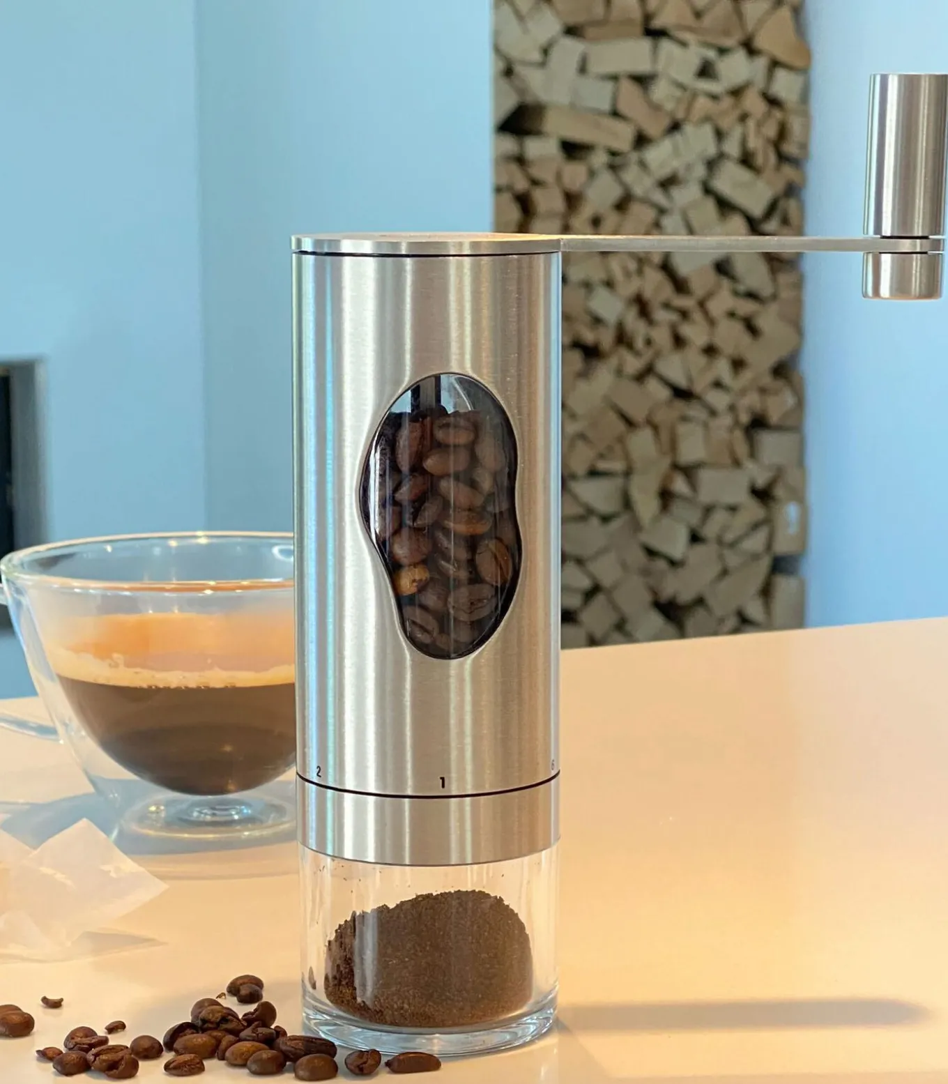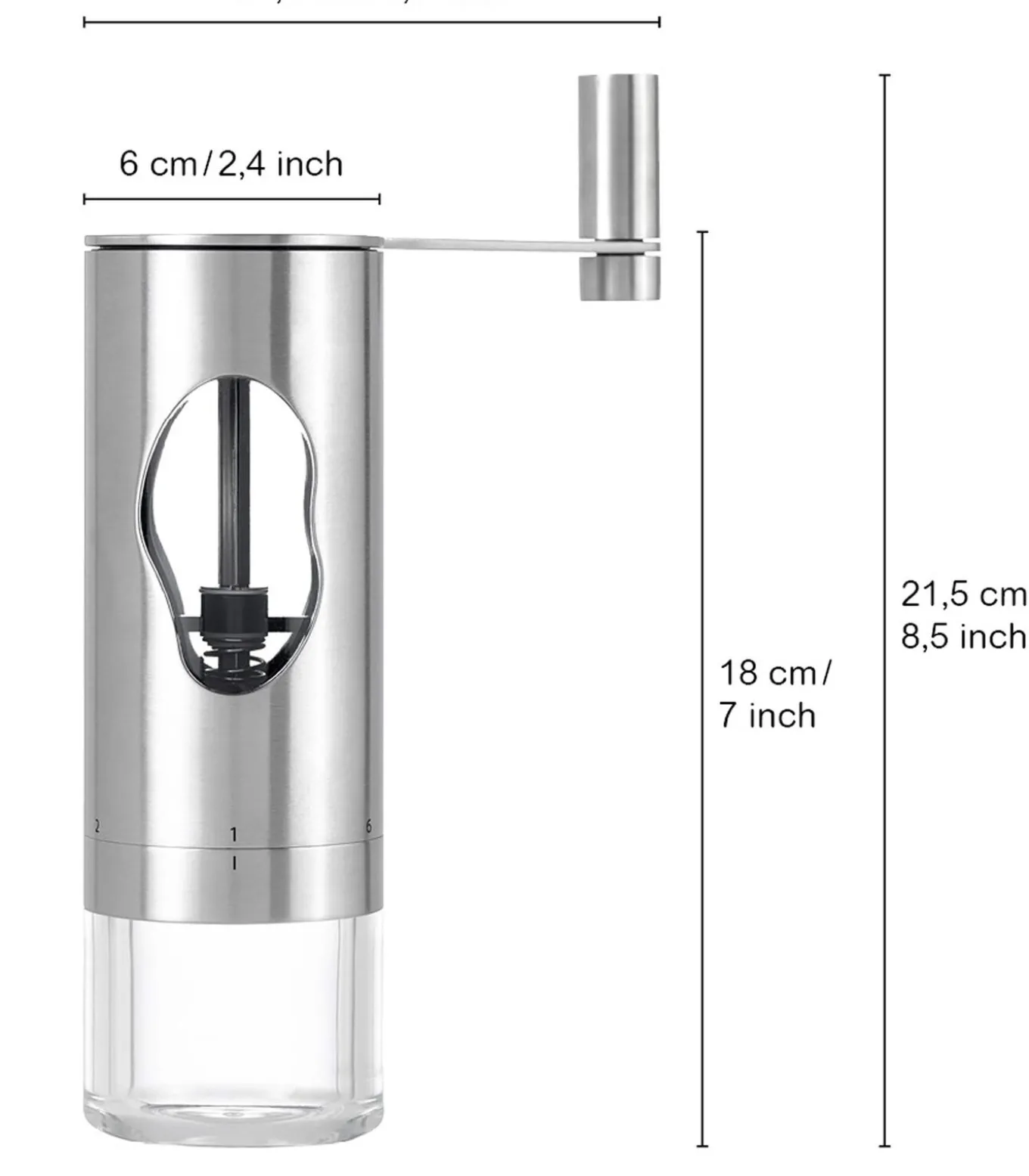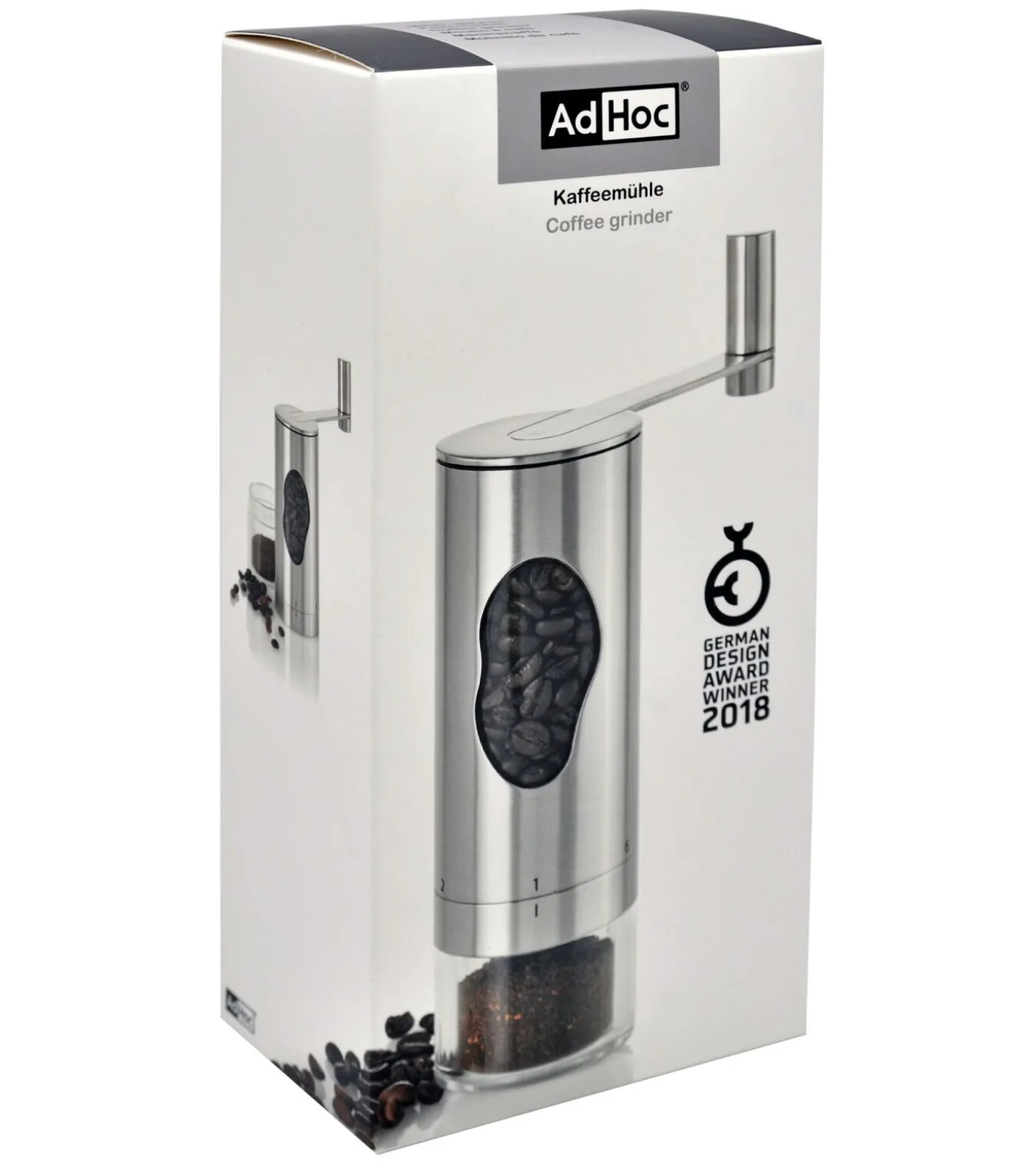 Deze RVS koffiemolen van AdHoc is een echte eyecatcher in uw keuken interieur. Deze stijlvolle molen helpt u snel en gemakkelijk aan uw kopje koffie. De Mrs Bean koffiemolen is daarom ook de ideale tool voor elke koffiefanaat. Door het transparante deel kunt u zien hoeveel bonen er nog in zitten. De koffiemolen kan tot 25 gram opvangen in het transparante bakje aan de onderkant. Geniet extra van uw koffie door de perfect fijn gemalen bonen door de Mrs Bean koffiemolen van AdHoc.