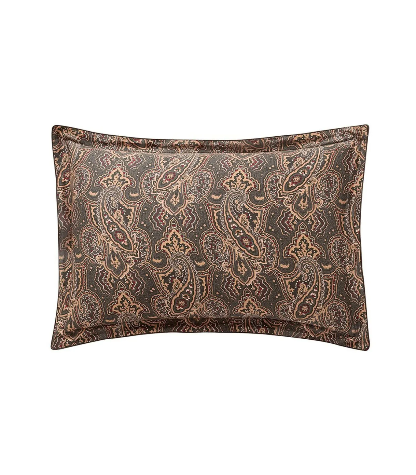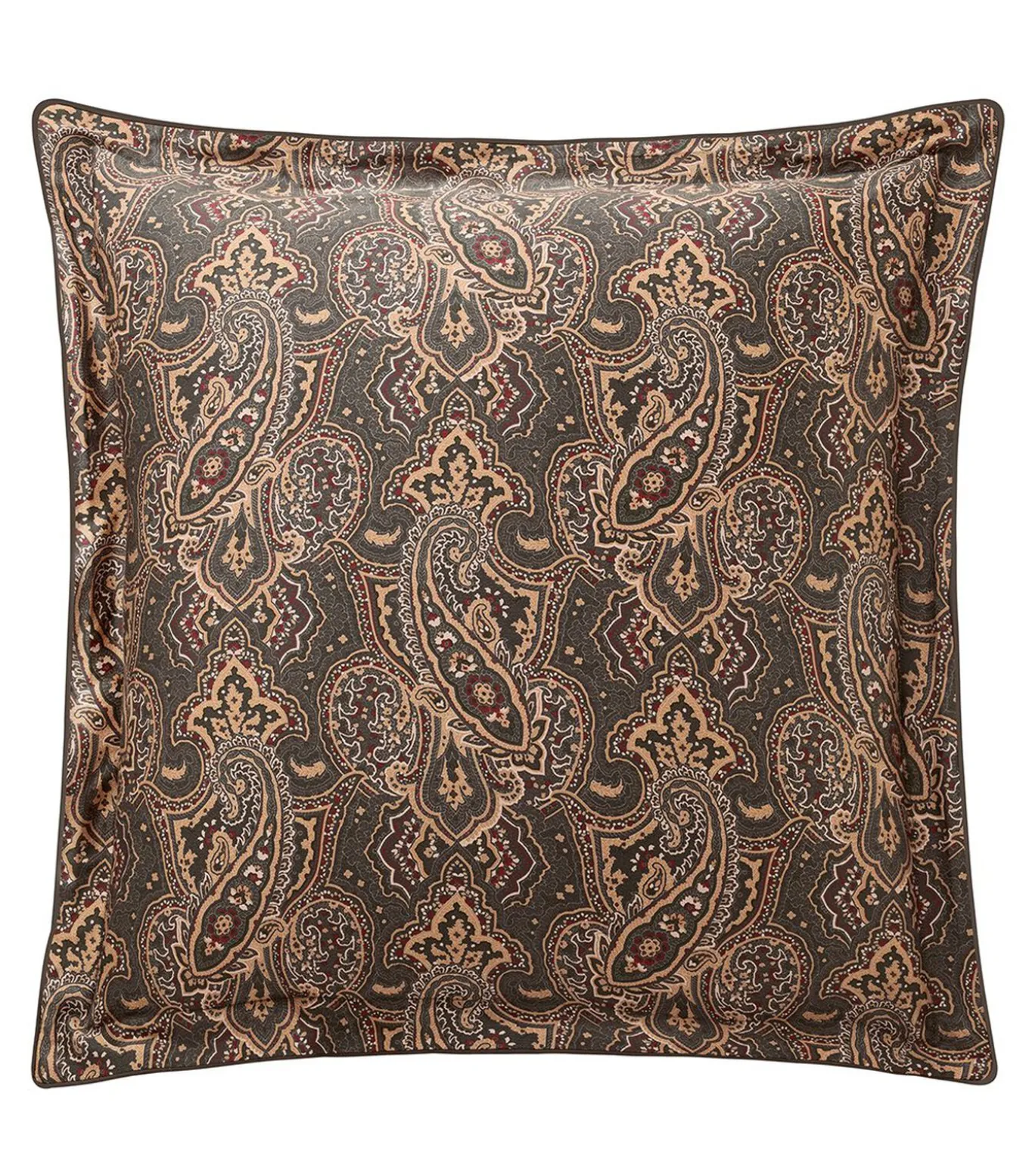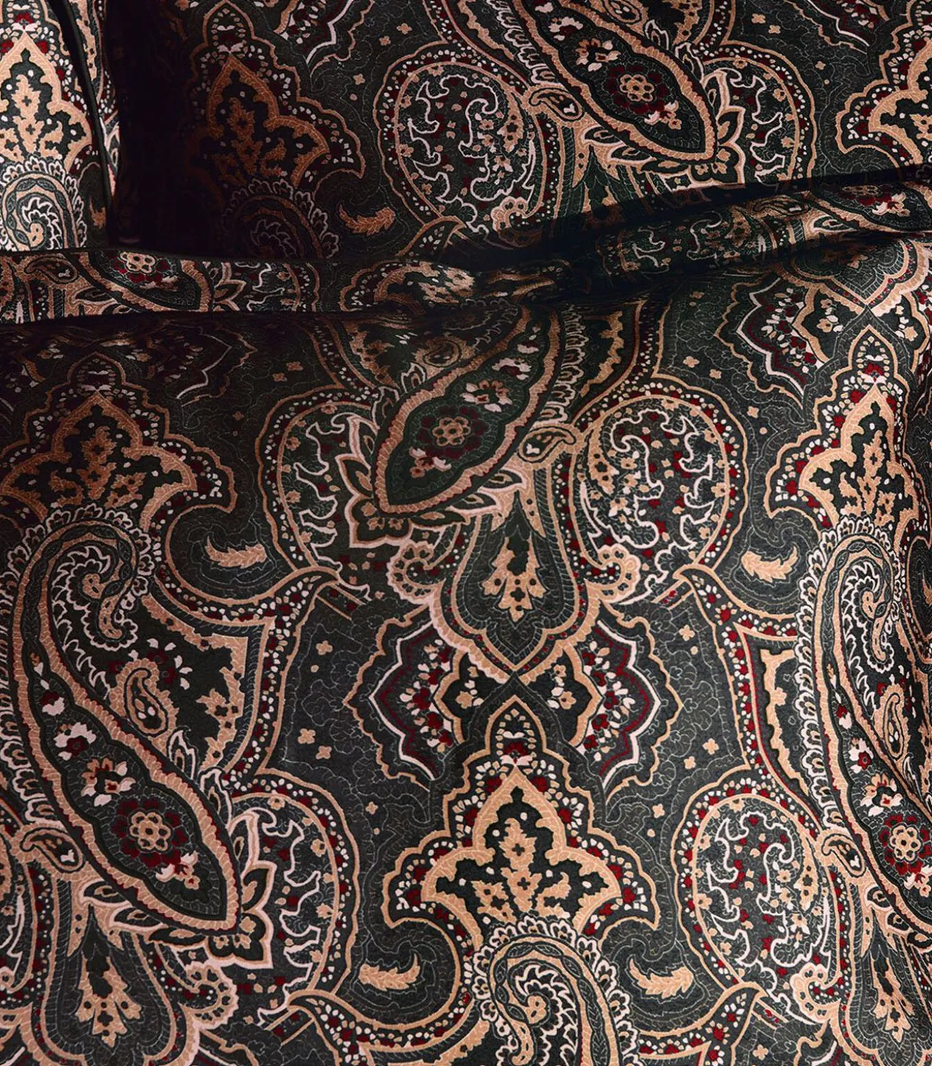 Print met paisleymotief in okertinten en engels groenPrint met stropdasmotief in okerkleuren