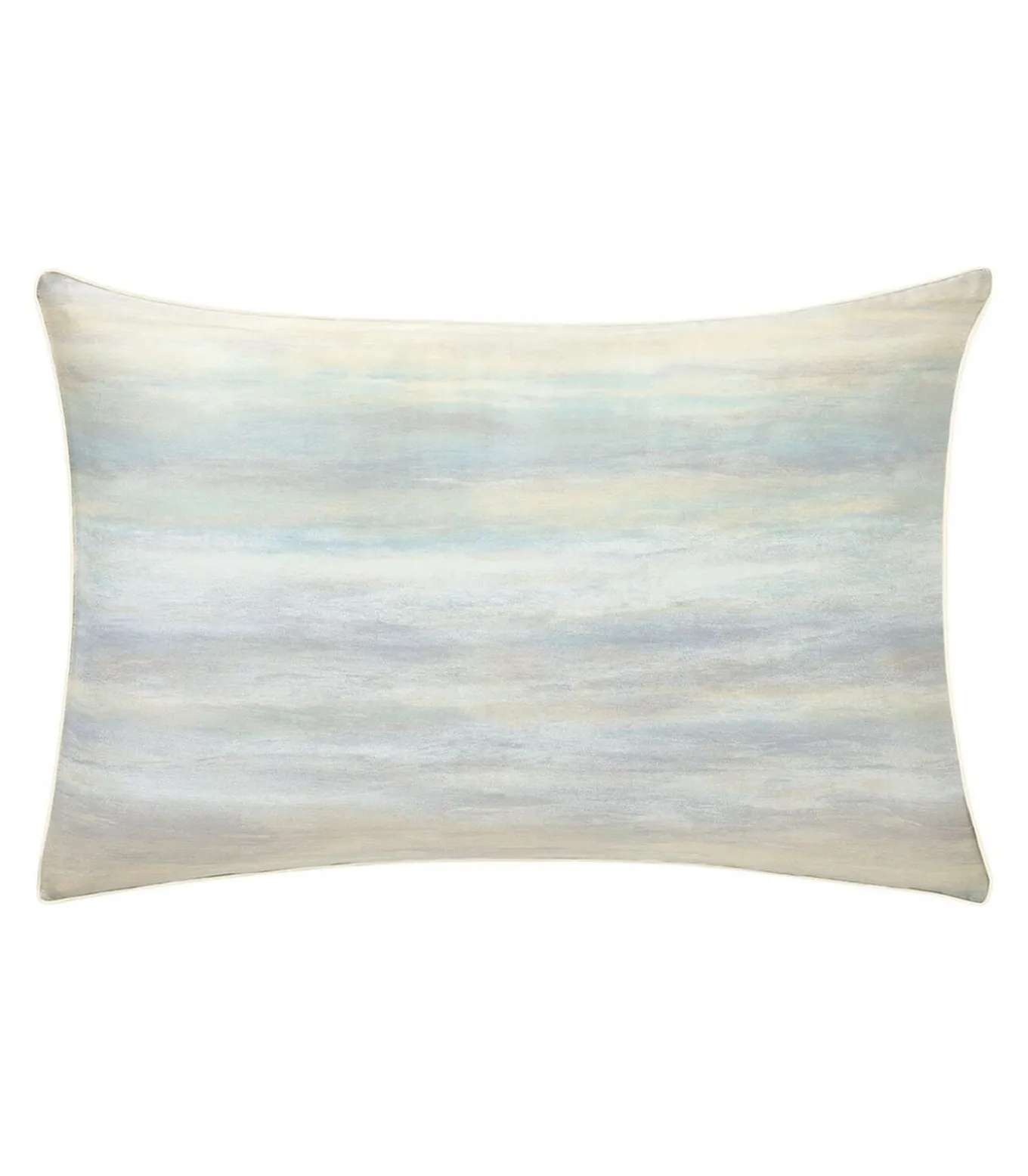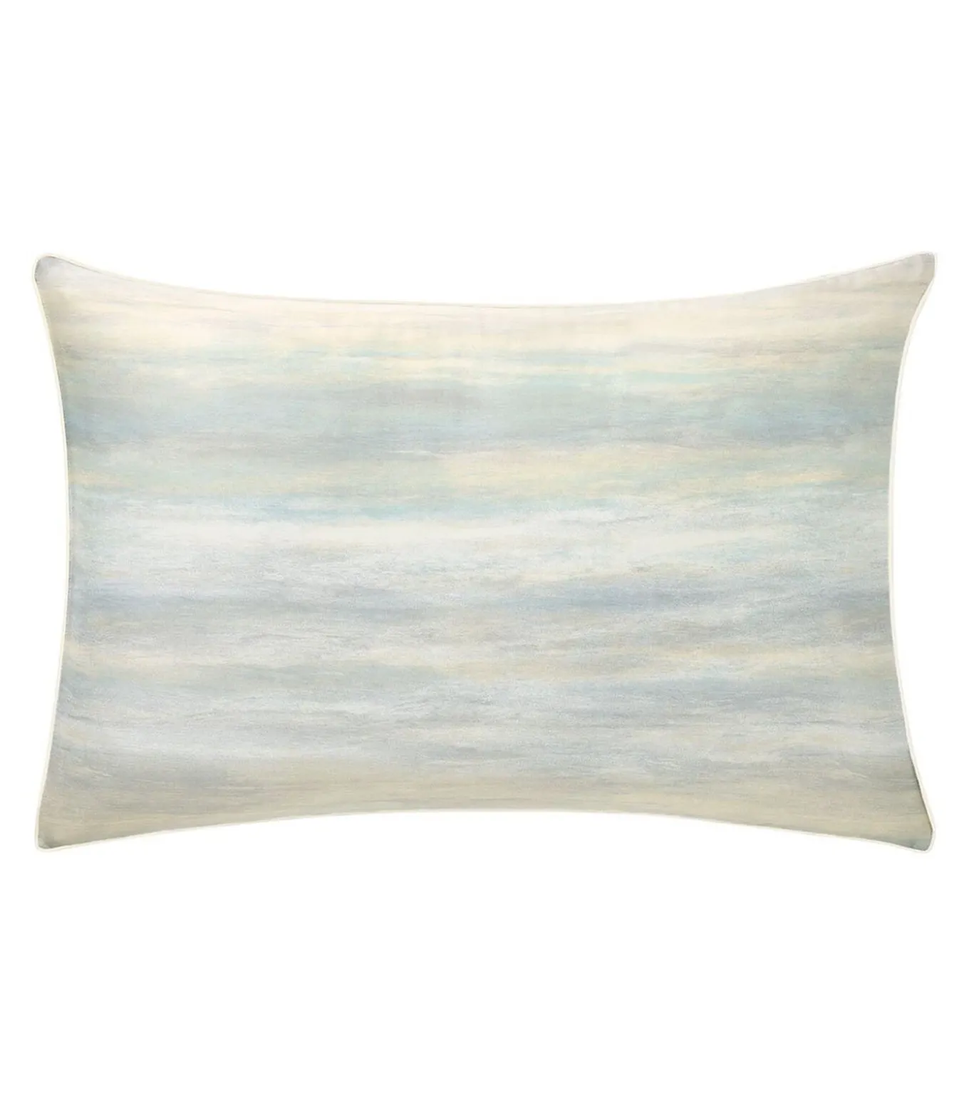 Voorkant en achterkant met aquarel vervaagde print in zand– en groentintenReversibele kussenhoes met dubbele flapAfwerking met ivoorkleurige bies