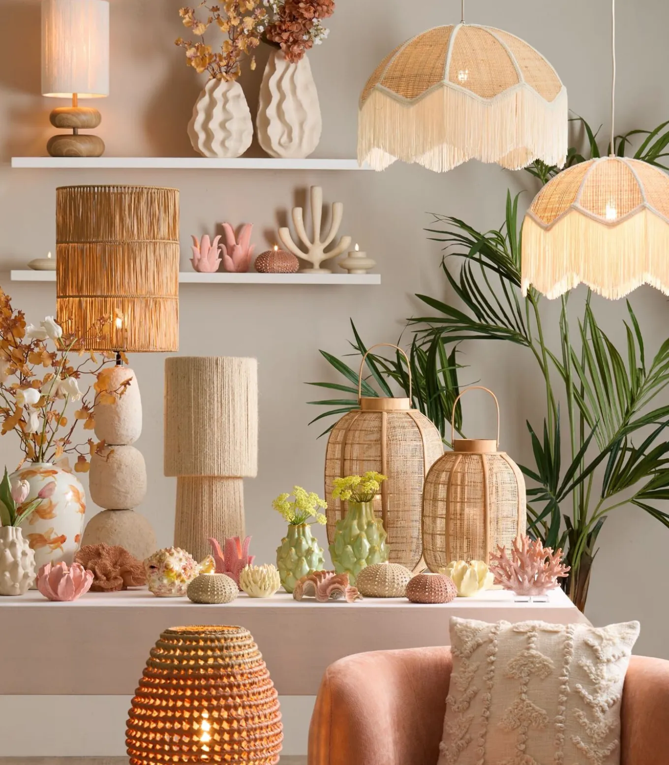 Met natuurlijk materiaal zoals raffia haal je een zomerse sfeer naar binnen. Lampenkap Lanzano is gemaakt van naturelkleurig raffia materiaal en is daardoor perfect geschikt voor een bohemian interieur. Doordat er wat licht door de kap heen schijnt ontstaat er een leuk en speels patroon op de muur. De lampenkap heeft een diameter van 25 centimeter en is 30 centimeter hoog.