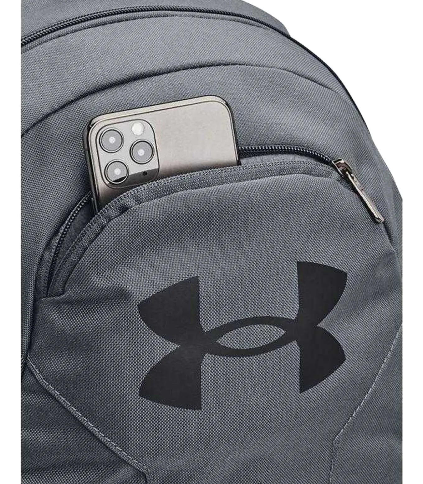 Baggage van merk Under Armour met logo – rugzak in grijskleur, gemaakt uit polyester en PU. Met een hoogte van 47 cm, lengte van 31 cm en breedte van 17 cm heeft deze baggage een capaciteit van 24 liter. Deze baggage beschikt over één voorzak, een riet en één zijzak. Het hoofdcompartiment is geschikt voor laptops tot 15″. Ook heeft deze baggage handgreep, ergonomische schouderriemen en gewatteerd rugpaneel. Het ontwerp bevat het merklogo. De stof technologie maakt de baggage zacht, bestendig tegen vlekkingen, voorziet van UA Storm Technologie en waterbestendig. De baggage wordt vastgehouden met een tweewegrits.