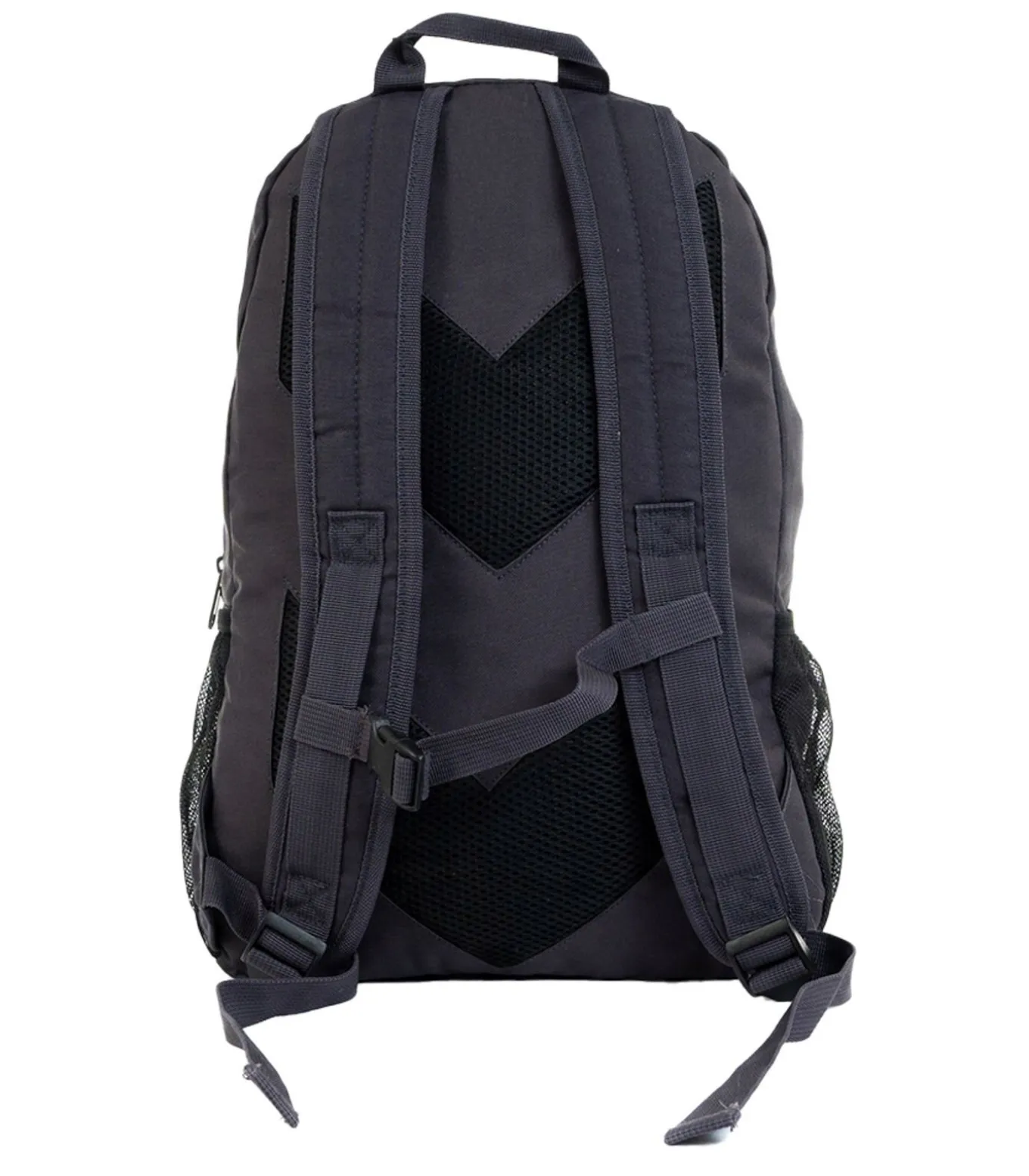 Hummel–logo zwarte rugzak gemaakt van polyester met een hoogte van 42 cm, breedte van 28 cm en lengte van 11 cm. Deze zak bevat één voorzak, twee zijzakken en één hoofdcompartiment. De rug is uitgerust met ventilatie en de borst en riem zijn verstelbaar. Deze bag heeft daarnaast een gewatteerde mesh rug en handgreep. Het ontwerp van deze zak is simpel, maar elegant. De bevestiging is tweewegrits.