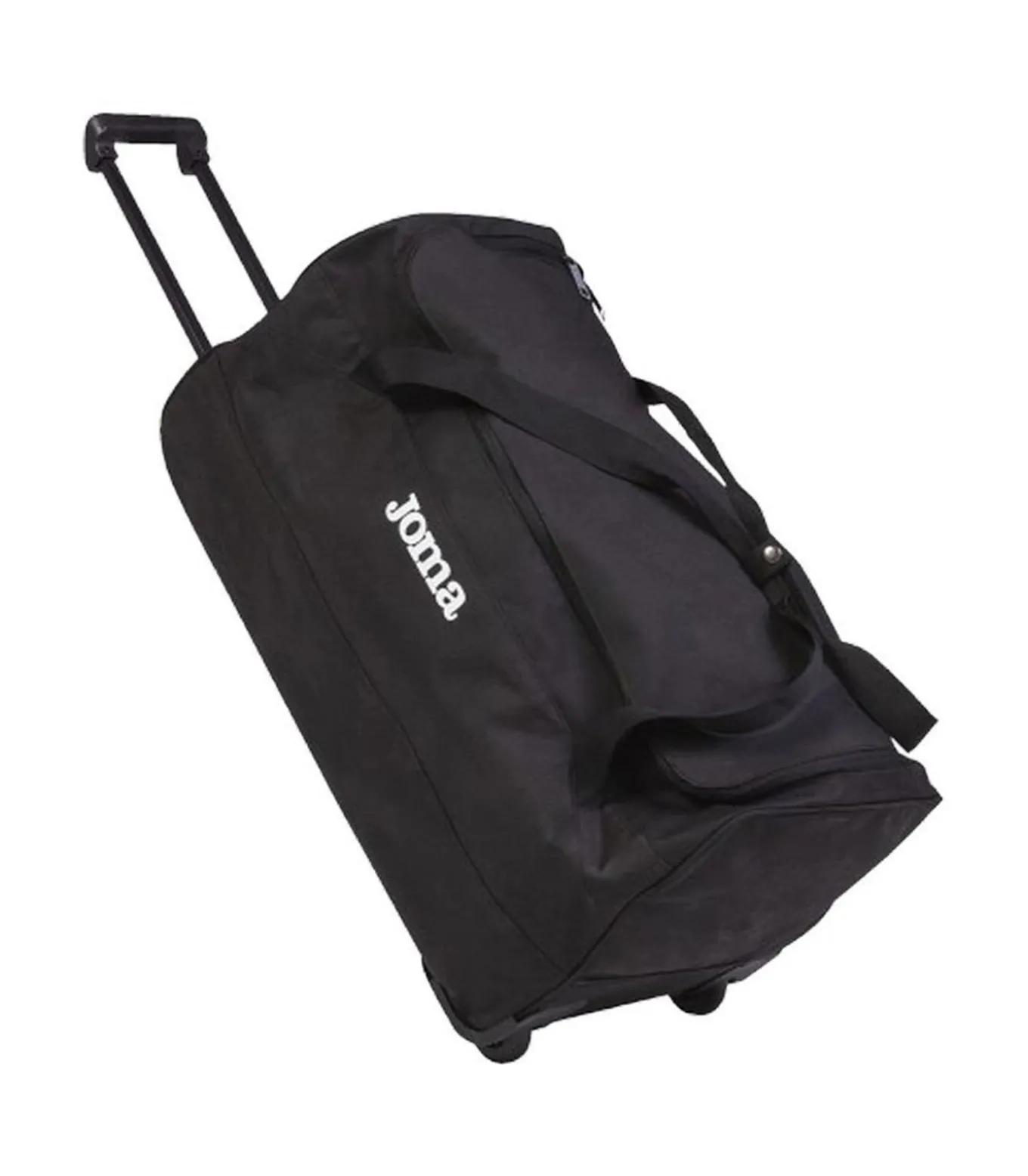 Joma’s zwarte zak met logo is gemaakt van 100% polyester en biedt een inhoud van 31,8 liter. Deze trolleyzak beschikt over één voorzak met rittensluiting, één hoofdcompartiment, twee wielen, handgrepen, een uitschuifbare trolleyhandgreep en een telescopische handgreep. Het ontwerp is elegant en eenvoudig en de bevestiging is tweewegrits. Deze praktische trolleyzak is perfect voor de dagelijkse reis naar school of het werk.
