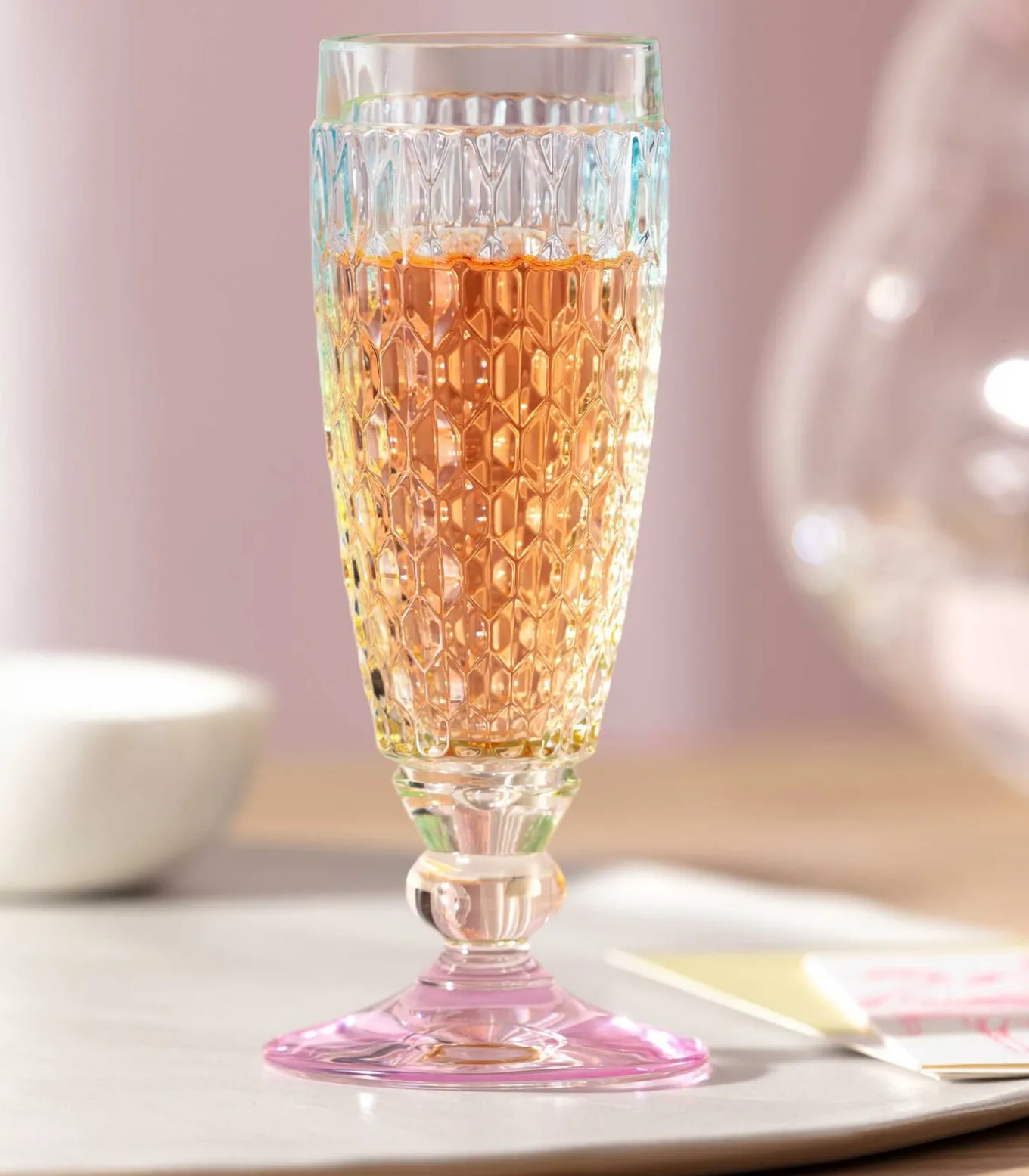 Het Boston Pearl glas maakt indruk met een facetpatroon dat het licht op allerlei manieren breekt en zo een fonkelend diamantspel creëert Villeroy & Boch – De iriserende parelglans toont tot vier kleurnuances en past perfect bij elke tafeldecoratie Ontdek de trendkleur en verzeker u nu van uw favoriete artikel! Geschikt voor de vaatwasser