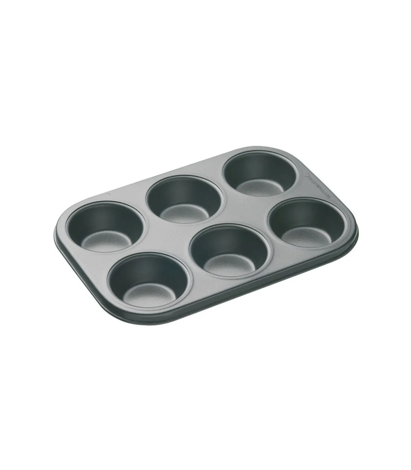 Maak muffins of andere hapjes in de MasterClass muffinvorm. Met de muffinvorm kunnen er 6 muffins tegelijk worden gemaakt. De muffinvorm is 27 x 18 centimeter groot. De gaten van de vorm hebben een diameter van 7 centimeter en 2,5 centimeter diep. De muffinvorm heeft een anti–aanbaklaag waardoor de muffins niet aanbakken. Ook is de muffinvorm vaatwasserbestendig.