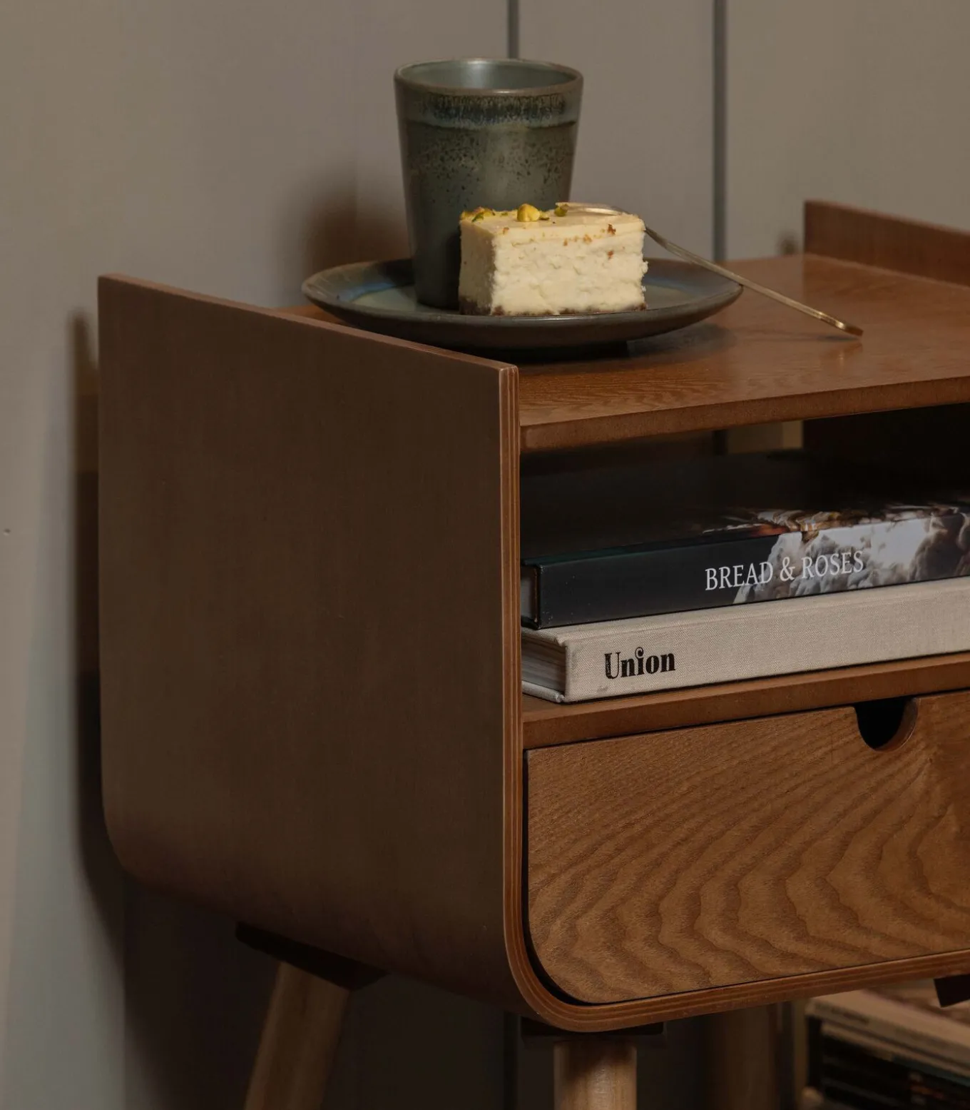 Het MDF plaatmateriaal uit onze collecties wordt gevormd uit geperste houtvezels welke onder druk worden verkleefd met behulp van hars. Hierdoor heeft dit materiaal een zeer glad oppervlakte. Het MDF in onze collecties wordt verwerkt in de achterwanden van een selectie opbergmeubelen. MDF biedt de basis voor notenhout of – eikenhout fineer. Elke gefineerde MDF plaat wordt in onze eigen fabriek voorzien van een transparante, beschermende coating.