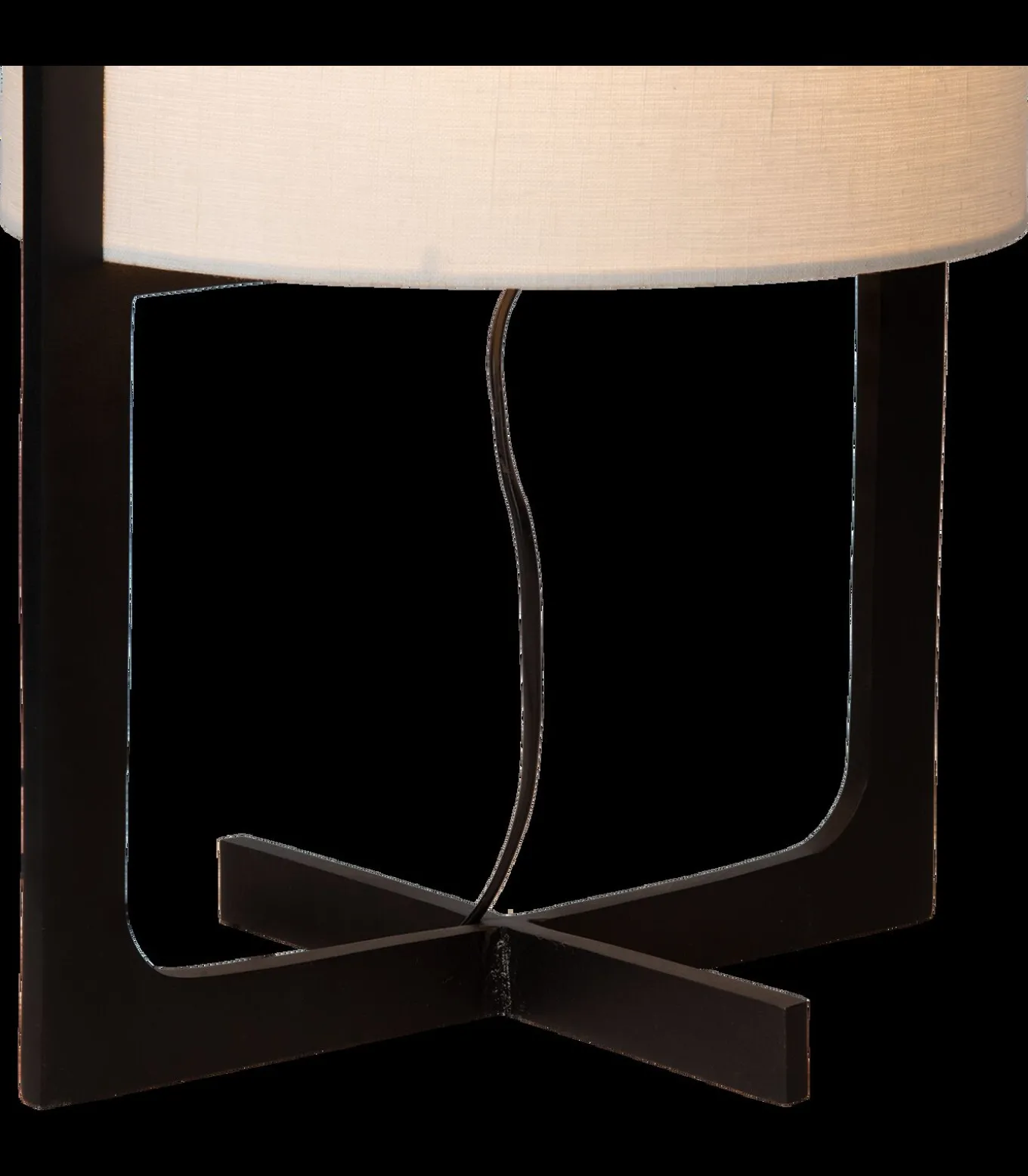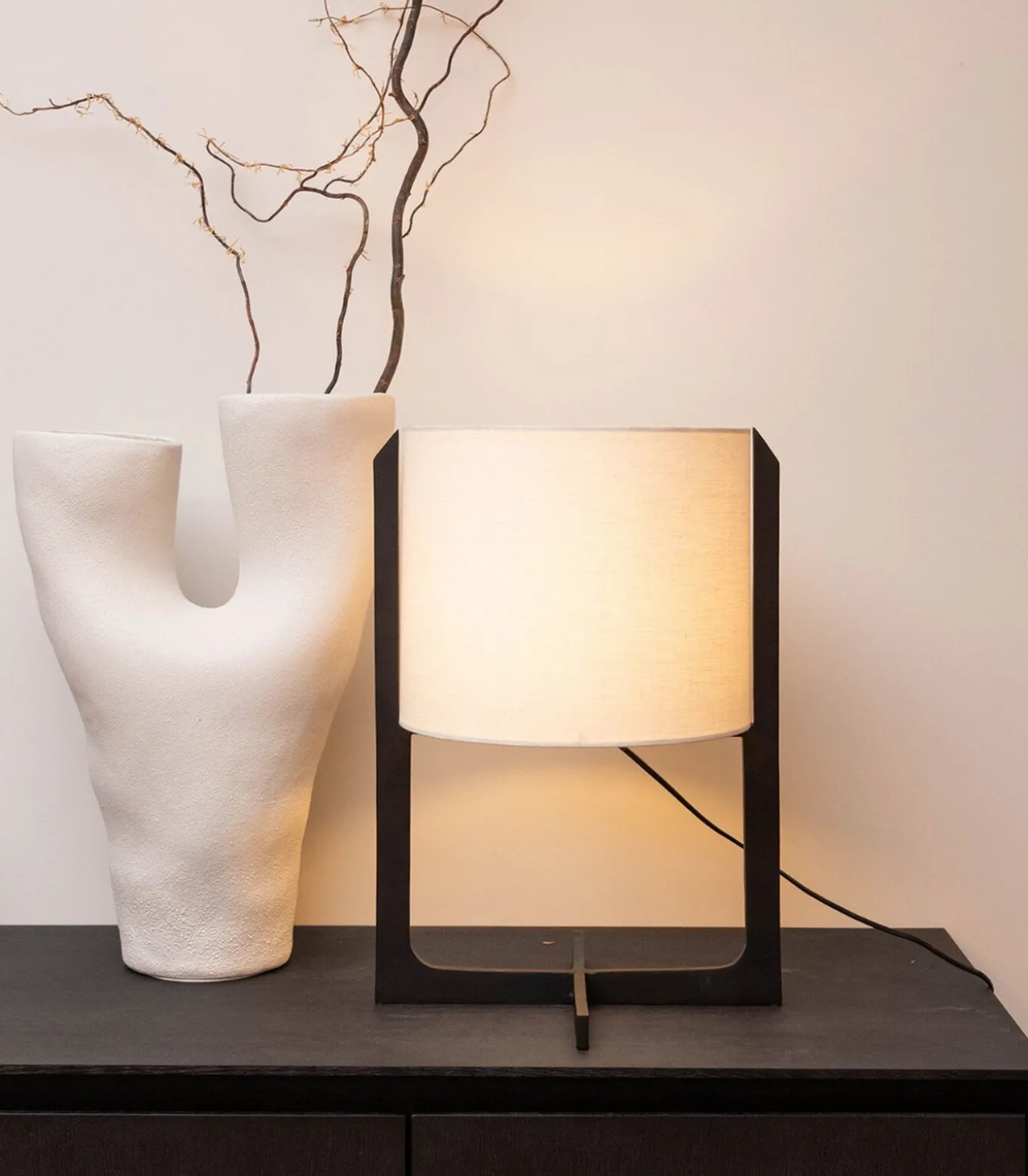 De tafellamp Obidos combineert een strak industrieel design met een natuurlijke uitstraling. De zwarte metalen voet heeft de vorm van een stijlvol kruis, wat zorgt voor een moderne en robuuste look. De lamp is afgewerkt met een natuurlijk witte linnen kap met een diameter van 30 cm, die een zachte en warme verlichting verspreidt. Met een hoogte van 50 cm is deze lamp ideaal voor sfeervolle verlichting in diverse interieurstijlen. De zwarte metalen details aan de zijkanten versterken het industriële karakter, waardoor de Obidos een perfecte mix is van elegantie en stoere uitstraling.