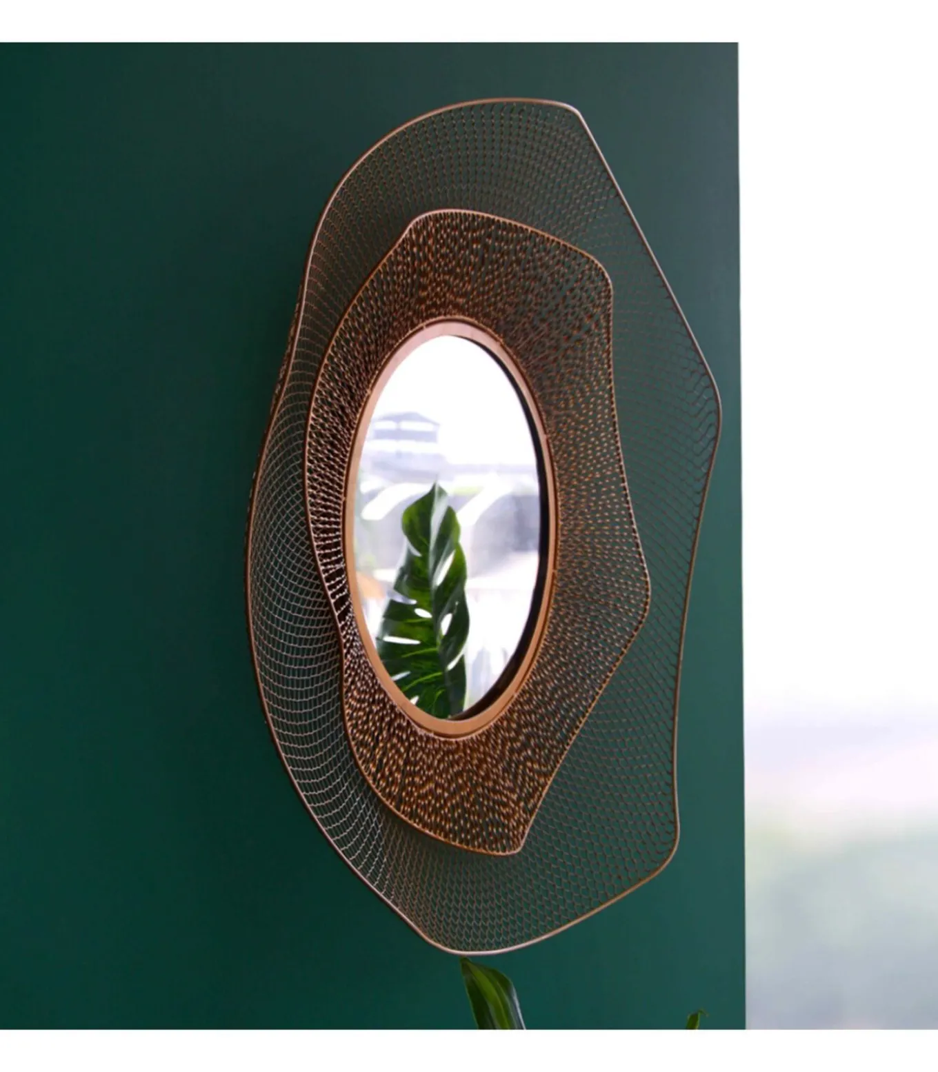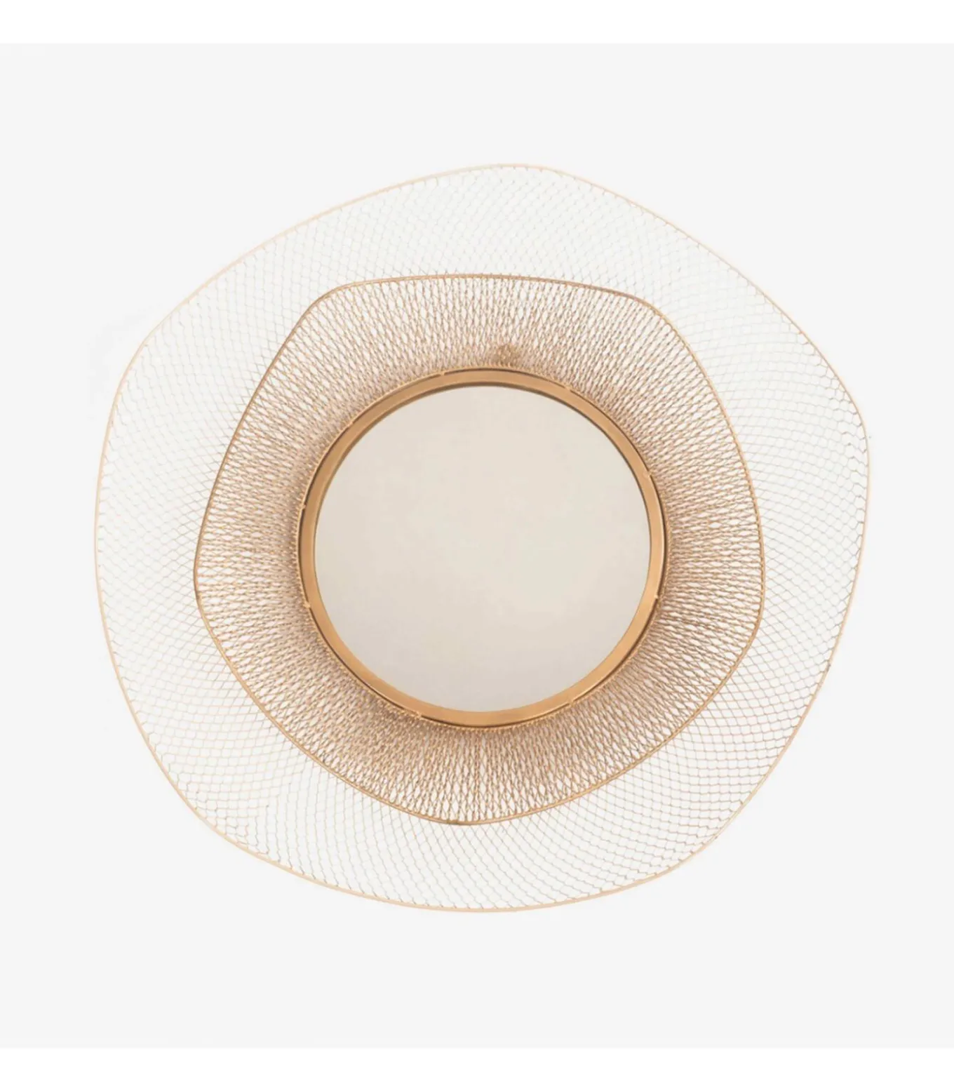 Bent u op zoek naar een trendy spiegel om uw interieur te verfraaien? U zult vallen voor de charme van de metalen spiegel LAWI! Gemakkelijk te combineren in moderne of eigentijdse ontwerpkamers, is dit decoratieve object ook zeer praktisch. Installeer het in een hal: een laatste blik om uw kapsel of make–up te controleren en klaar is Kees! De organische vorm van deze spiegel doet u niet denken aan een plas water of een wolk? De afgeronde contouren inspireren een zachte elegantie. Vage en subtiele materialen vormen de omlijsting van de glazen spiegel. Ze creëren zo delicate licht– en transparantiespellen. Plaats het boven een dressoir of een commode om een harmonieus geheel te creëren met het meubilair van uw woonkamer of slaapkamer. Deze spiegel zal het natuurlijke licht reflecteren en uw kamer verfijnd transformeren. De beige en gouden kleur maakt het gemakkelijk te combineren met de tinten van uw interieur. En als u het aan de muur van uw badkamer zou hangen om uzelf op uw gemak te bewonderen?