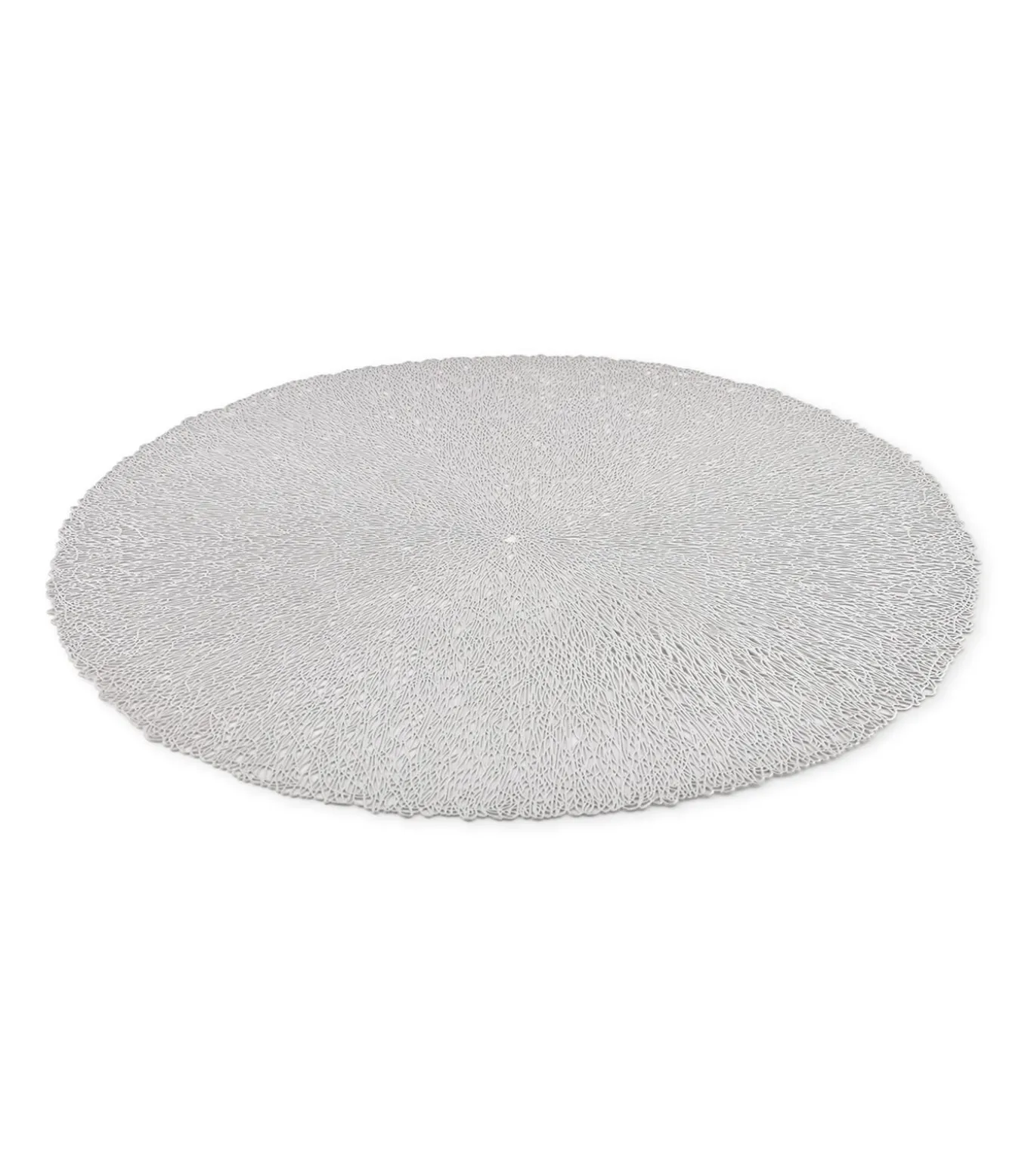 Kijk eens naar deze prachtige ronde, zilverkleurige placemat uit onze Vene collectie. Deze ronde placemat is gemaakt van hoogwaardig PVC en afgewerkt in een prachtige zilverkleurige tint. Hij geeft elke tafelsetting een geraffineerde uitstraling. Stel je voor dat je gasten genieten van zowel visuele elegantie als tactiele luxe. Perfect voor intieme diners of grote feesten, deze met de hand afwasbare placemat verfraait je ruimte moeiteloos. Ontdek de exclusieve charme van de Vene collectie – waar verfijning en functionaliteit elkaar ontmoeten.