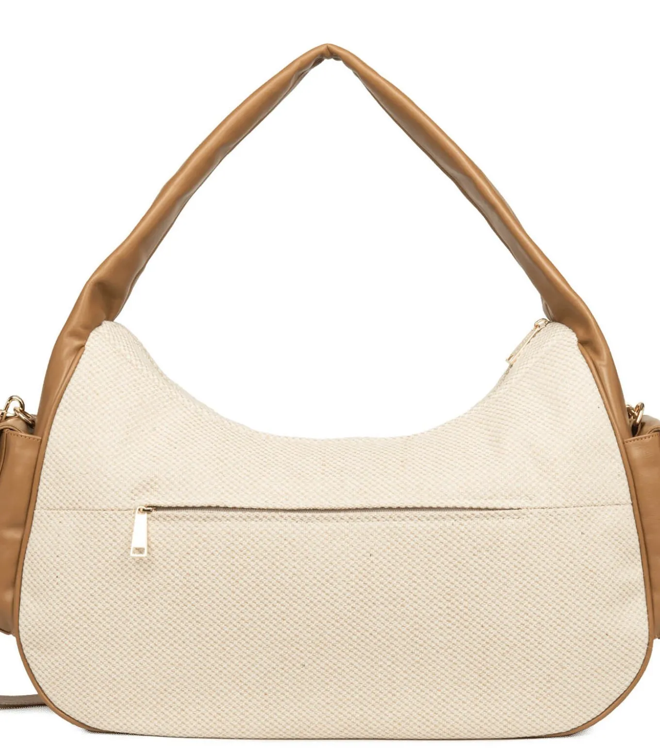 Deze nieuwe Julia x Lancaster handtas is gemaakt van katoen. Hij heeft een buitenvak met rits, een enkel binnenvak, een binnenvak voor je telefoon en een binnenvak met rits. Deze tas is perfect voor op reis en combineert functionaliteit en elegantie met een tijdloos ontwerp. Hij kan op de schouder of kruislings gedragen worden.