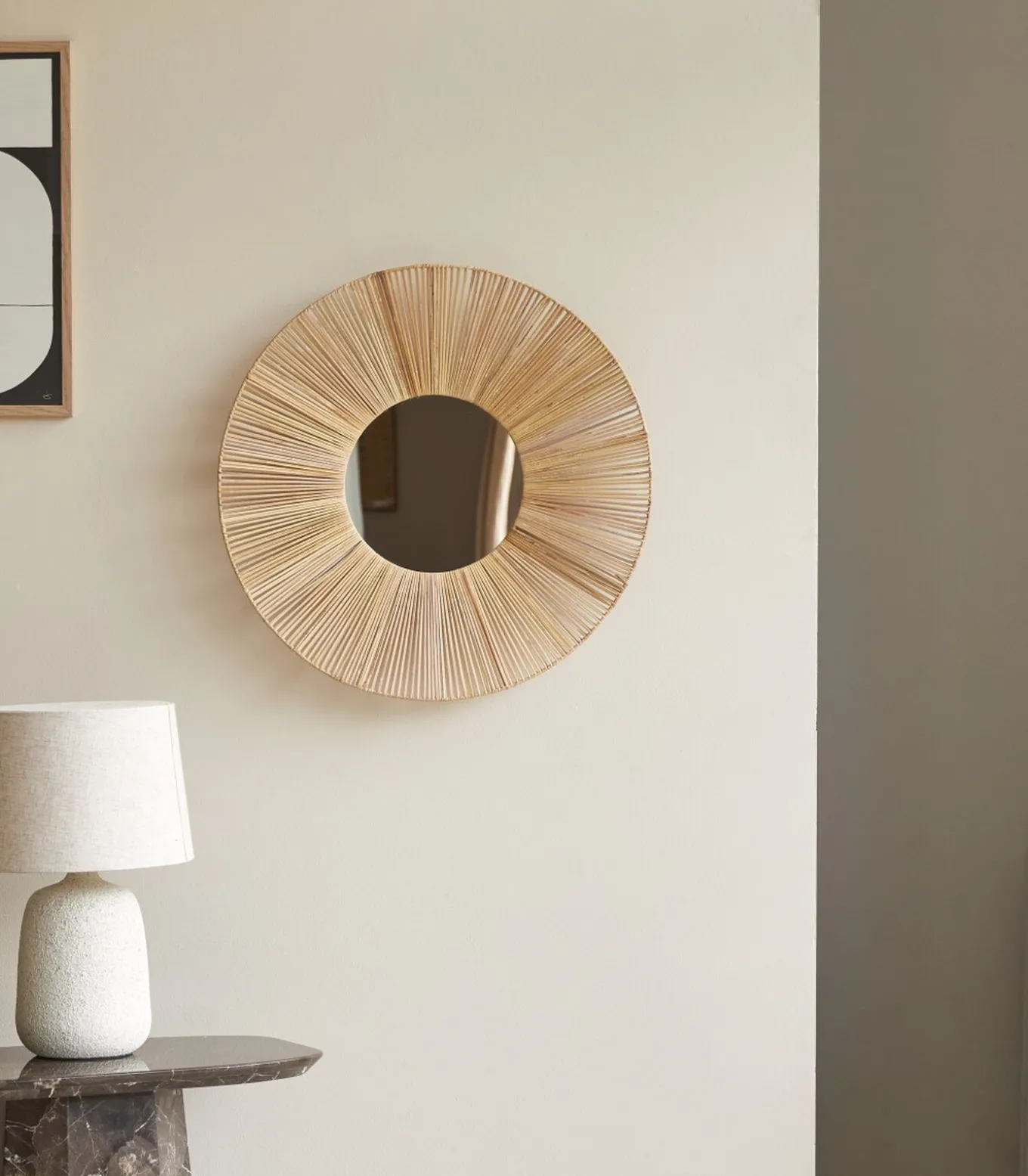 Met zijn natuurlijke, organische elegantie past deze op een zon lijkende spiegel in elk interieur.