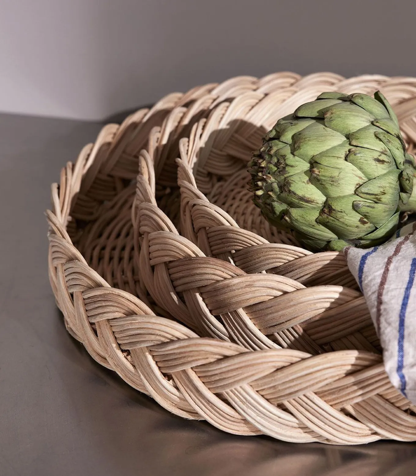 Onze Maru Broodmanden zijn een perfecte mix van elegantie en functionaliteit. Deze prachtige broodmand, die met de grootste zorg en aandacht voor detail met de hand is gemaakt, is ontworpen om je eetervaring te verbeteren en een vleugje rustieke charme toe te voegen aan je tafelsetting. Maru betekent cirkel in het Japans en de organische vormen vormen een mooi contrast met het grove rotan riet. Verkrijgbaar in verschillende maten. Gemaakt van 100% rotan.