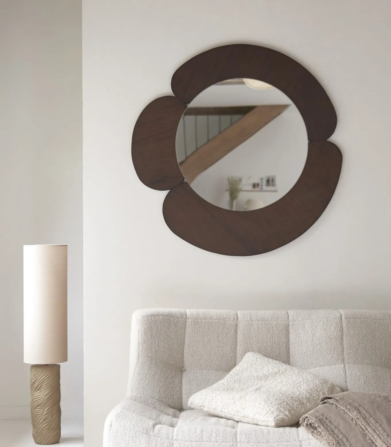 De prachtig vormgegeven ronde spiegel Sara in massief mindihout is een topstuk met een gelakte afwerking voor dagelijks gebruiksgemak. Hij is ook verkrijgbaar is licht mindihout.