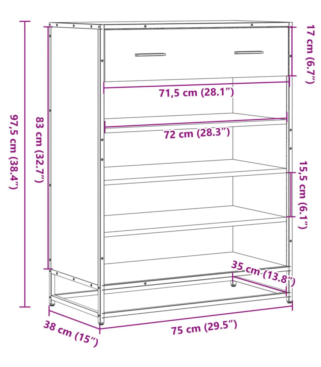 Voldoende opbergruimte: het schoenenrek heeft schappen, waardoor er voldoende ruimte is voor het opbergen van schoenen. Met dit praktische opbergmeubel zijn rondslingerende schoenen verleden tijd.