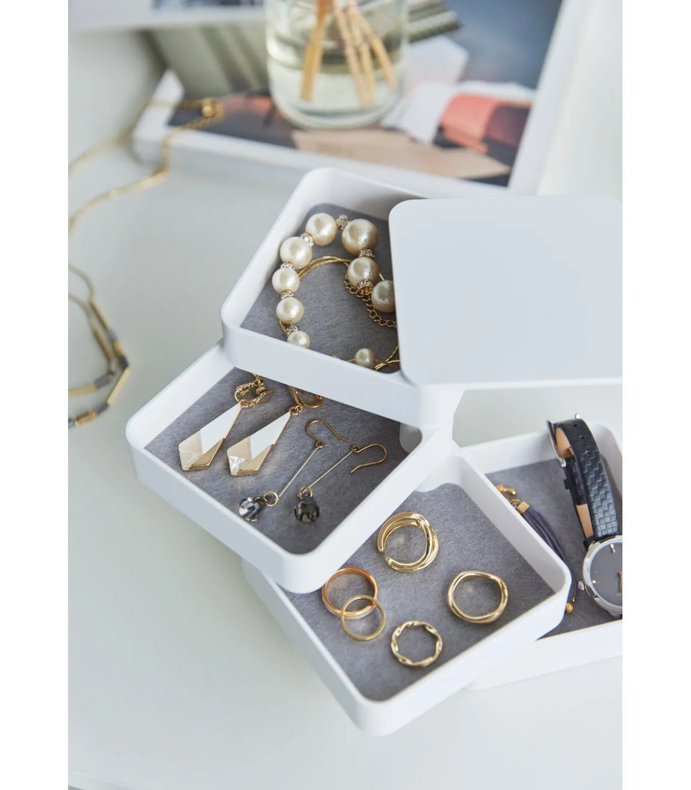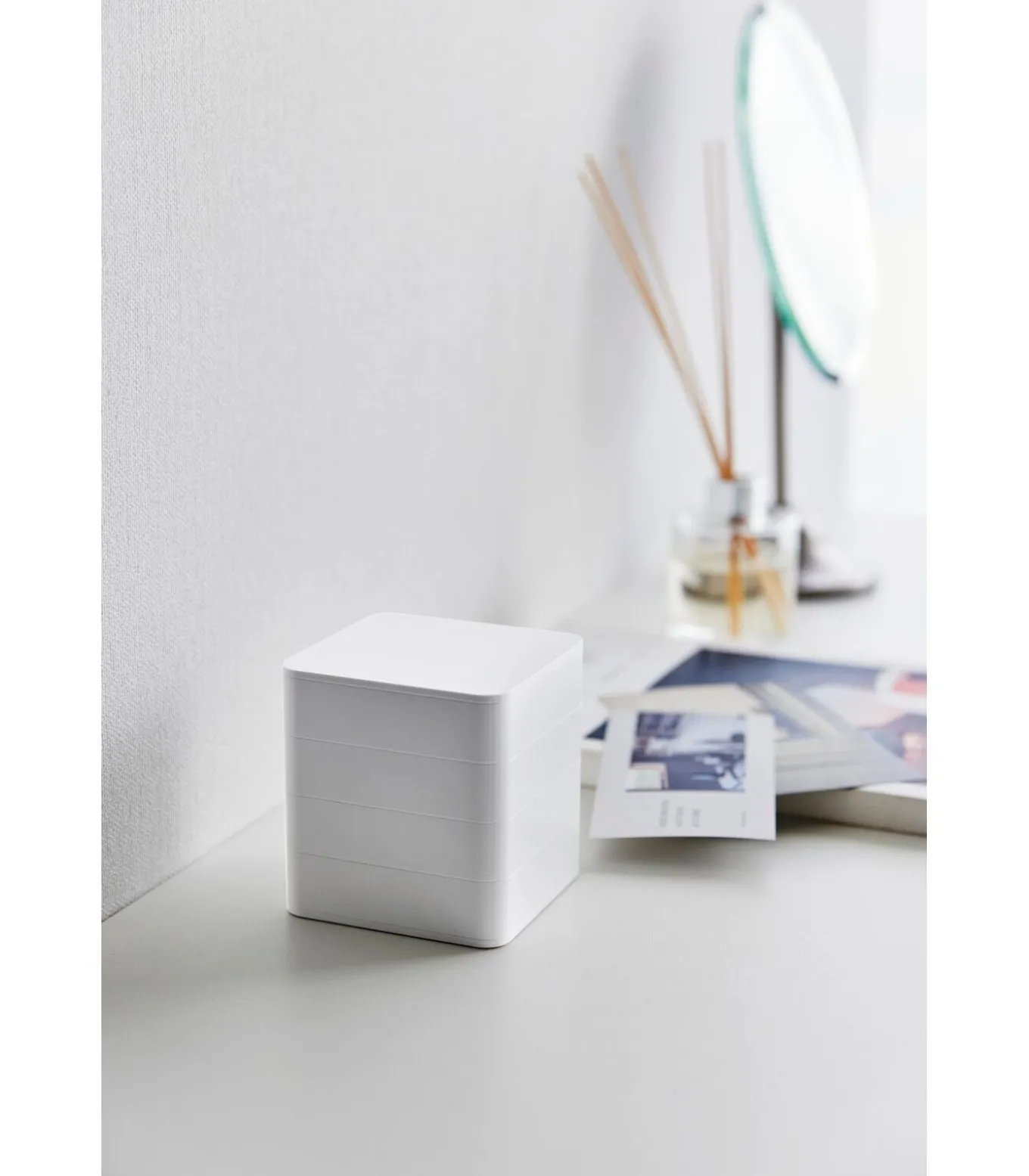 Sieradendoos Vierkant – 4 niveaus – Tower – Wit