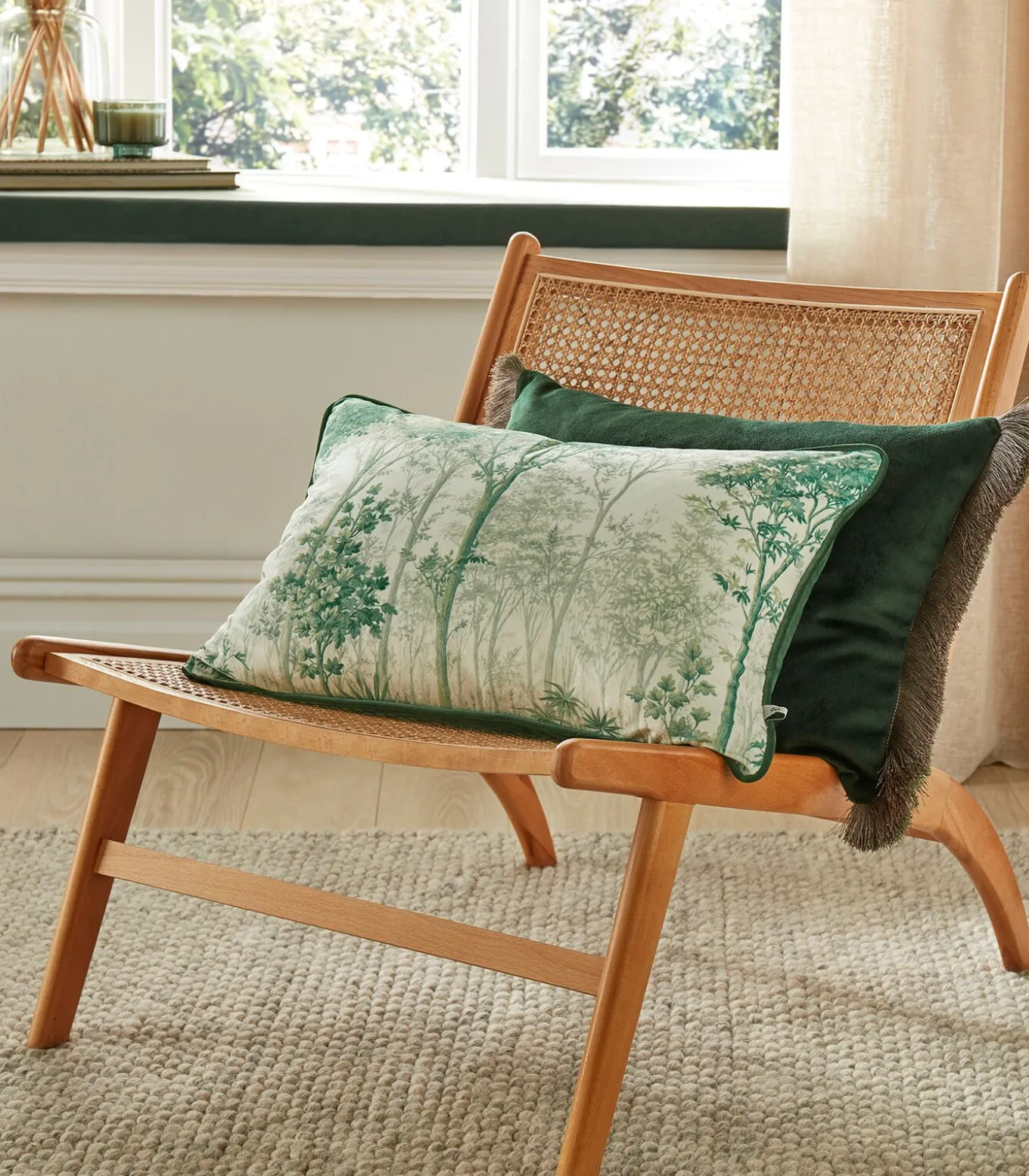 Maak met ons betoverende kussen Coppice Forest een uitstapje naar een magisch bos. De rustgevende bomen in zachtgroene tinten en de contrasterende smaragdgroene achterzijde maken dit fluwelen kussen de ideale geraffineerde finishing touch voor je interieur.