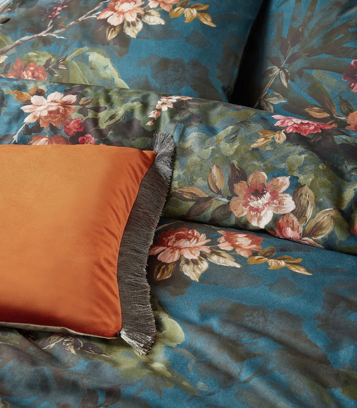 Met zijn volle oranje tinten en soepele fluwelen achterzijde in bescheiden bruin afgewerkt met elegante franjes, is onze Fringe Opulence in gebrand oranje het toppunt van verfijning.