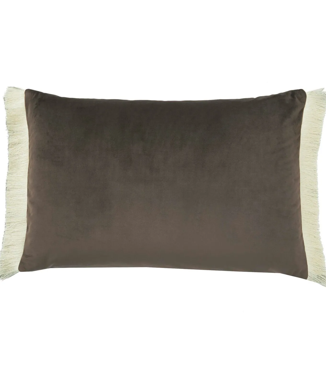 Laat je verleiden door ons puur chocoladebruine kussen Fringe Opulence. Met zijn crèmewitte fluweel met rijke chocoladebruine franjes en diepbruine achterzijde met crèmewitte franjes, is dit kussen de neutrale factor die je huis nodig heeft.