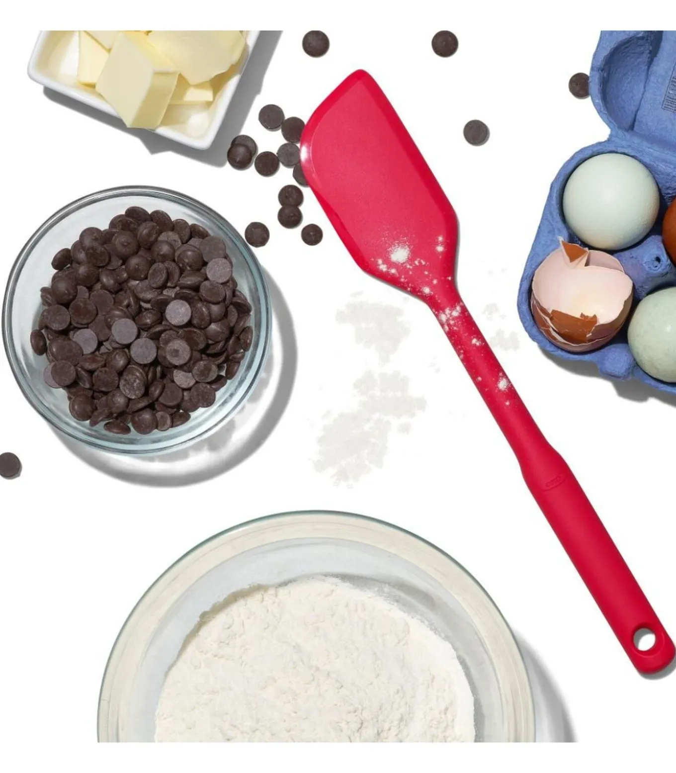 Deze siliconen spatel van OXO Good Grips is handig om te mixen, schrapen, scheppen en roeren. De kop en hals zijn gemaakt van siliconen. Dit is hittebestendig tot maar liefst 300°C en bovendien veilig voor gebruik in kook– en bakgerei met een anti–aanbaklaag. De zachte, comfortabele greep steunt je hand tijdens het gebruik en is anti–slip, zelfs wanneer je handen nat zijn.