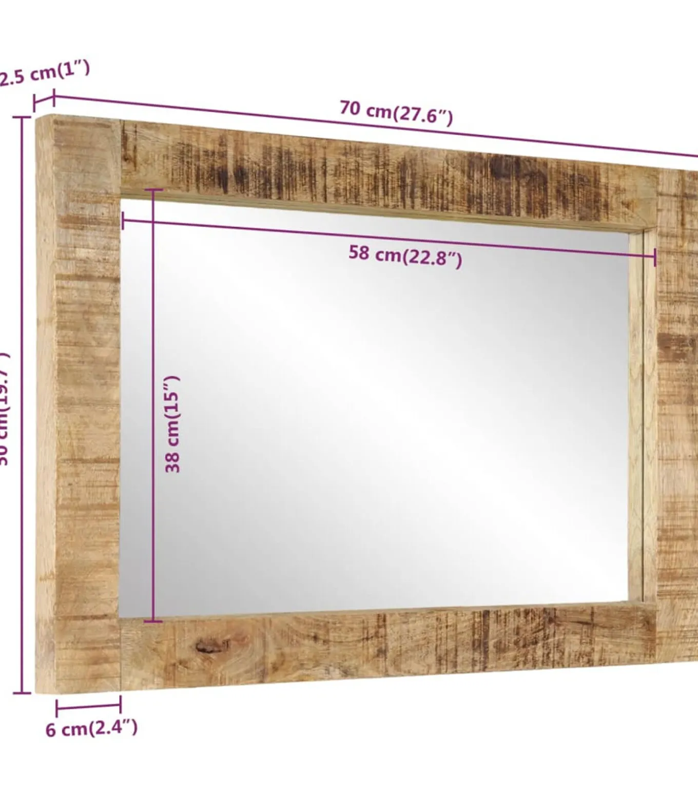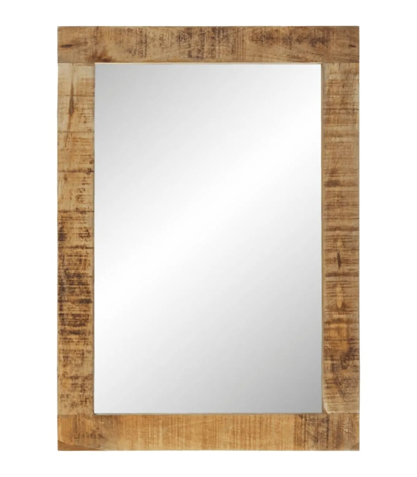 Massief mangohout: massief mangohout is een sterk, tropisch hardhout waar stevige meubelen van gemaakt worden. De prachtige houtnerven maken elk meubelstuk net even anders dan de rest. Het massief houten frame geeft de spiegel een rustieke charme en zorgt tegelijkertijd voor duurzaamheid.