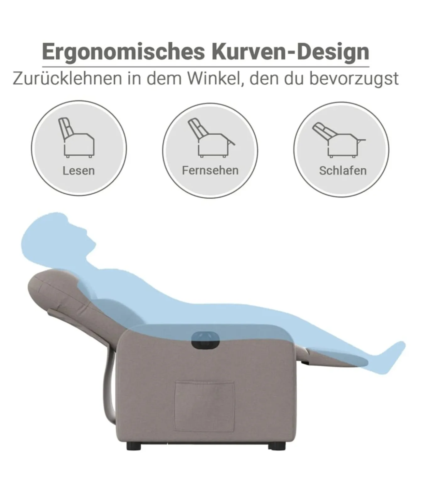 Elektrisch verstelbare functie: deze verstelbare fauteuil is uitgerust met een elektromotor die ervoor zorgt dat de voetensteun en rugleuning automatisch in elke positie worden aangepast naar eigen voorkeur, met een simpele druk op de knop aan de zijkant van de stoel. De stoel is maximaal 135 graden te kantelen. De rugleuning kan bovendien snel in zijn oorspronkelijke stand worden gezet met één druk op de knop.