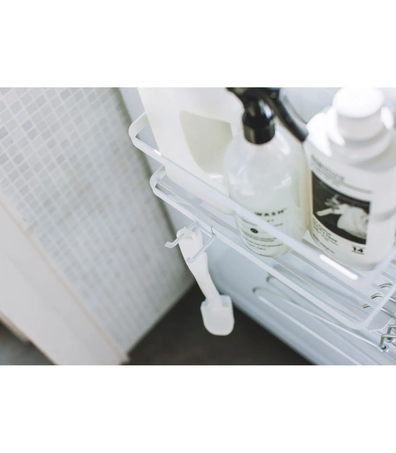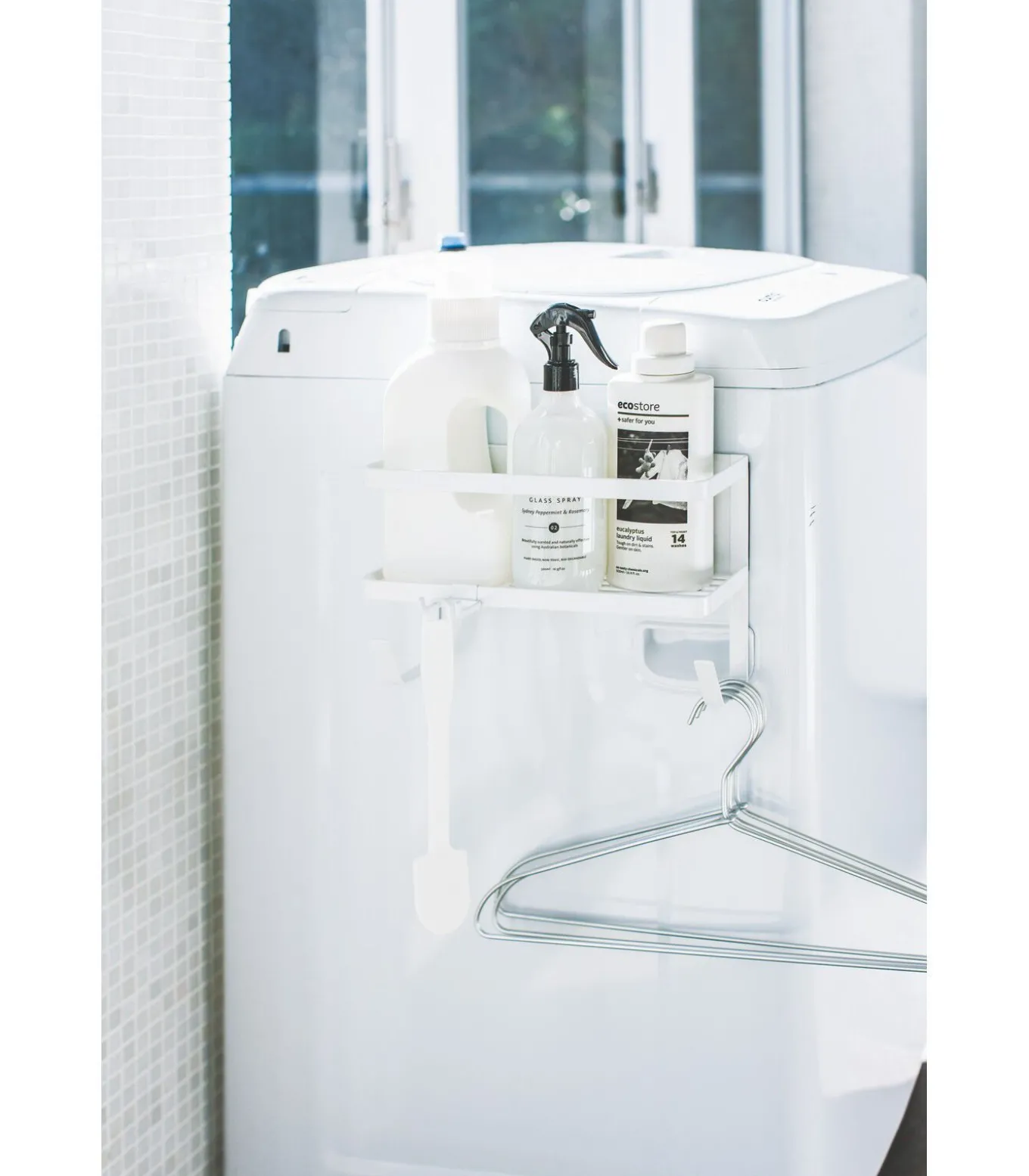 Dit wasrek van Yamazaki is magnetisch en eenvoudig te bevestigen aan een wasmachine of ander metalen oppervlak. Het biedt praktische opbergruimte voor was– of badkamerbenodigdheden op het rooster, dat is uitgerust met twee vaste haken. Daarnaast beschikt het rek over een verplaatsbare haak, ideaal voor het ophangen van kleine gebruiksvoorwerpen die je snel bij de hand wilt hebben.