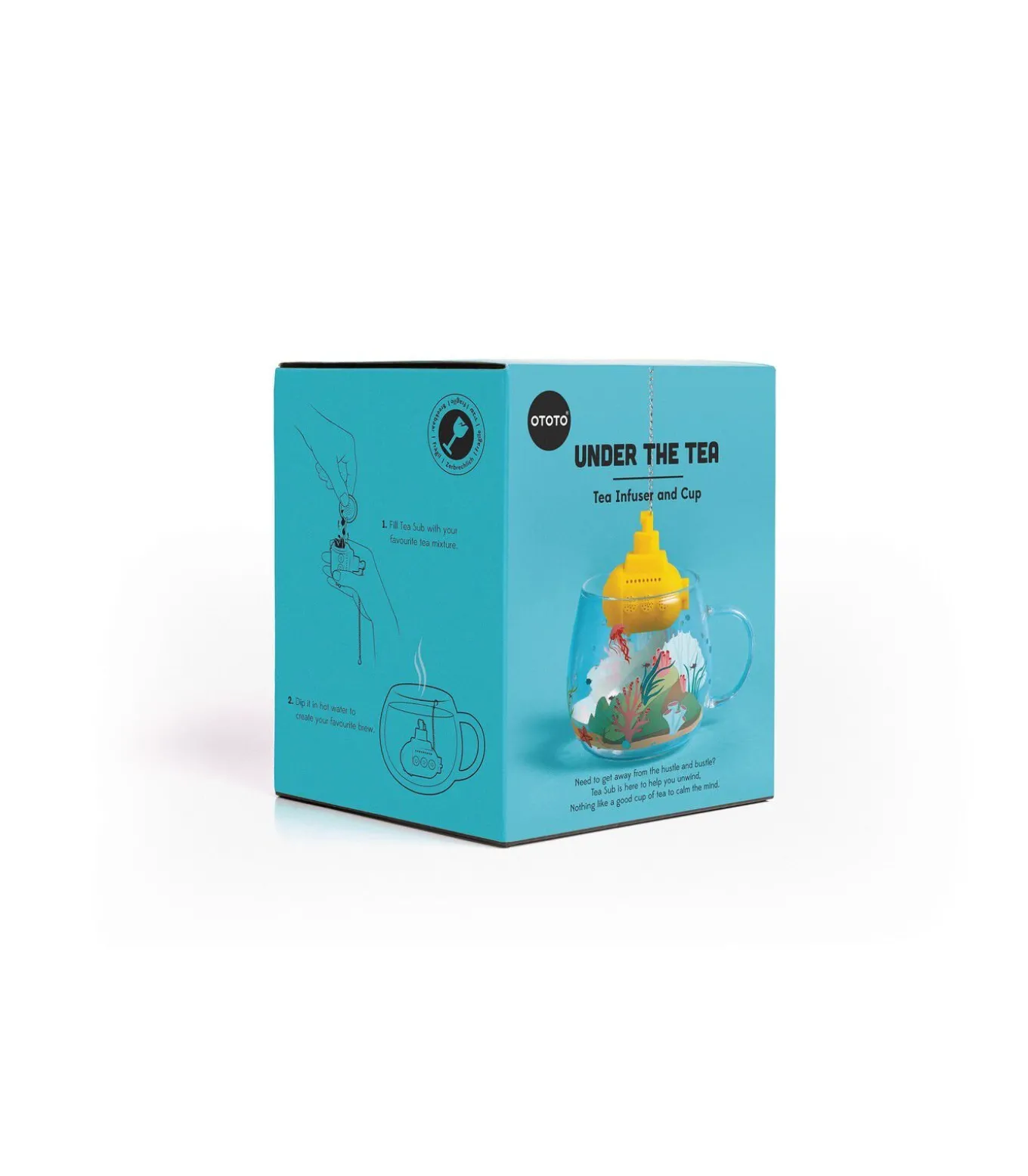 Wanneer je toe bent aan een heerlijk kopje thee en wat vrolijkheid, komt de onderzeeër naar boven gedreven. Voeg losse theeblaadjes toe en de onderzeeër zrogt ervoor dat de bladdjes naar de bodem van het kopje zinken, waardoor de bladdjes de kans krijgen om de aroma’s te laten ontwikkelen.